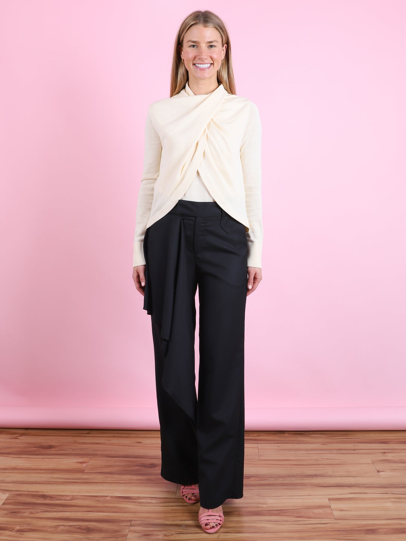 A classic Johanna Ortiz silhouette in soft Pima cotton. Defined by a sculptural draped front that gathers at the neckline. Finished with long sleeves. An easy layer for Fall-Winter days.