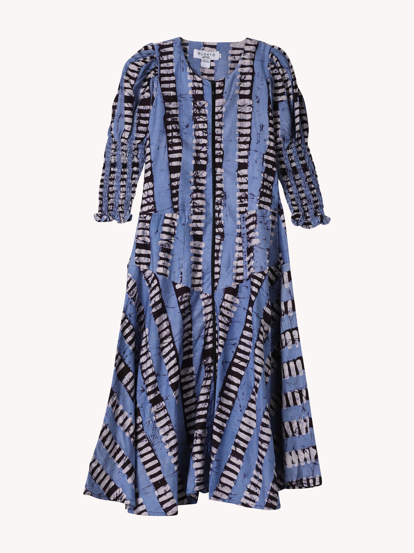Based between Brooklyn and Lagos, clothing label Busayo is the brainchild of lawyer-turned-designer Busayo Olupona. From the start, the designer wanted to integrate traditional Nigerian prints into her collections, specifically adire—a time-honored textile technique. As a result, Busayo has become known, and loved, for its bright, color-infused dresses and high-volume tops.