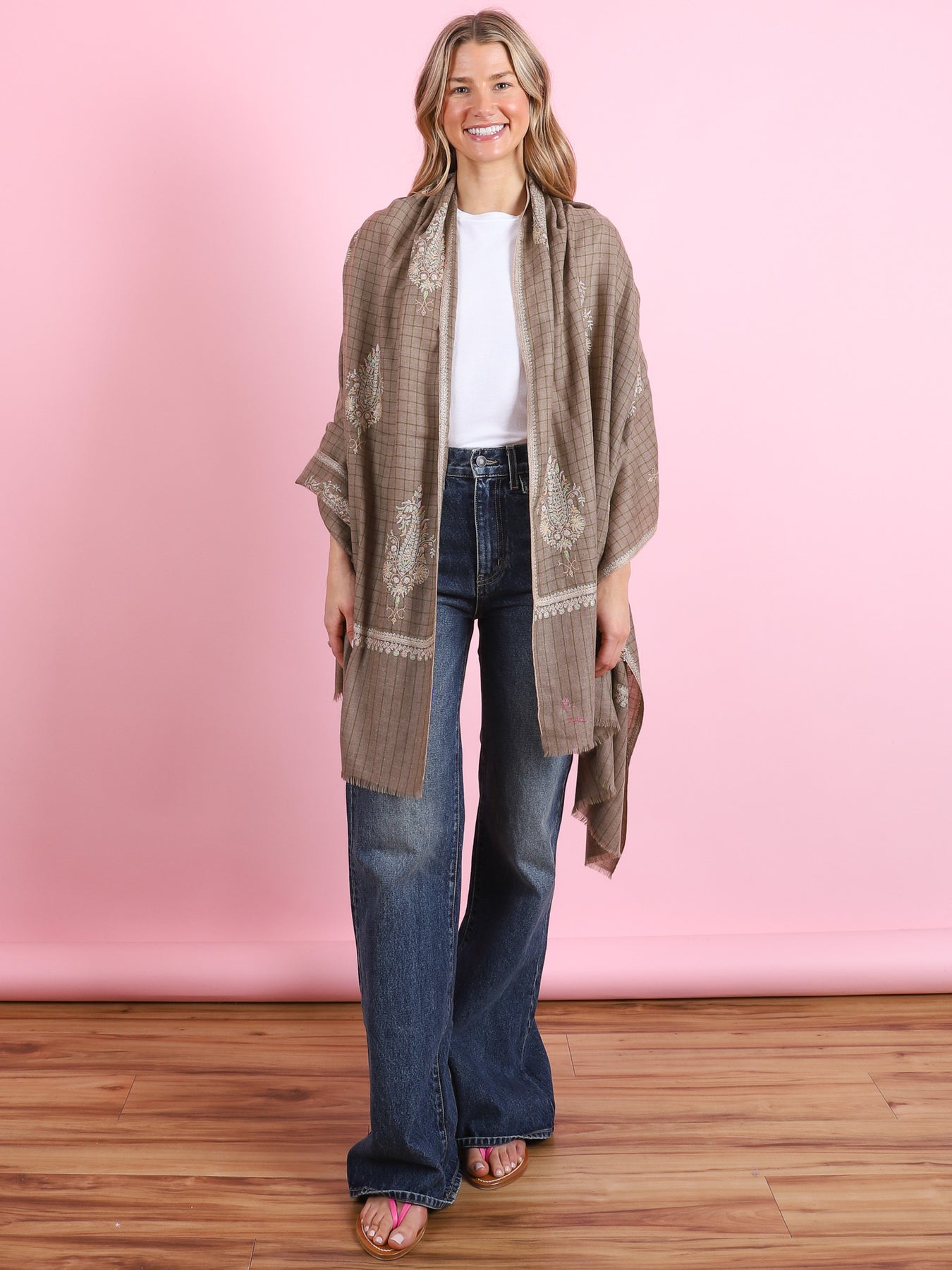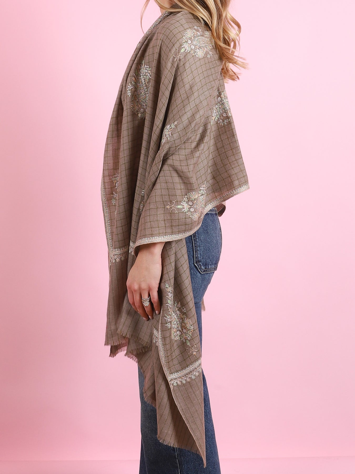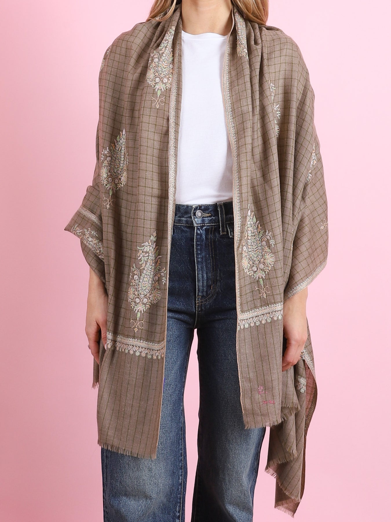 Beige Paisley Embroidered Yaser Shawl