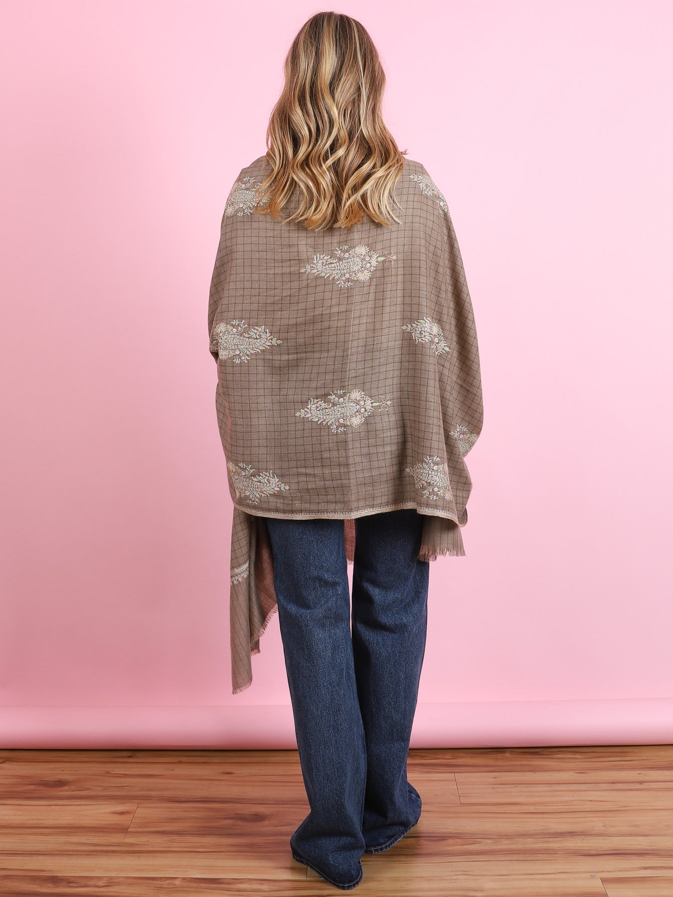 Beige Paisley Embroidered Yaser Shawl - CabanaCanary