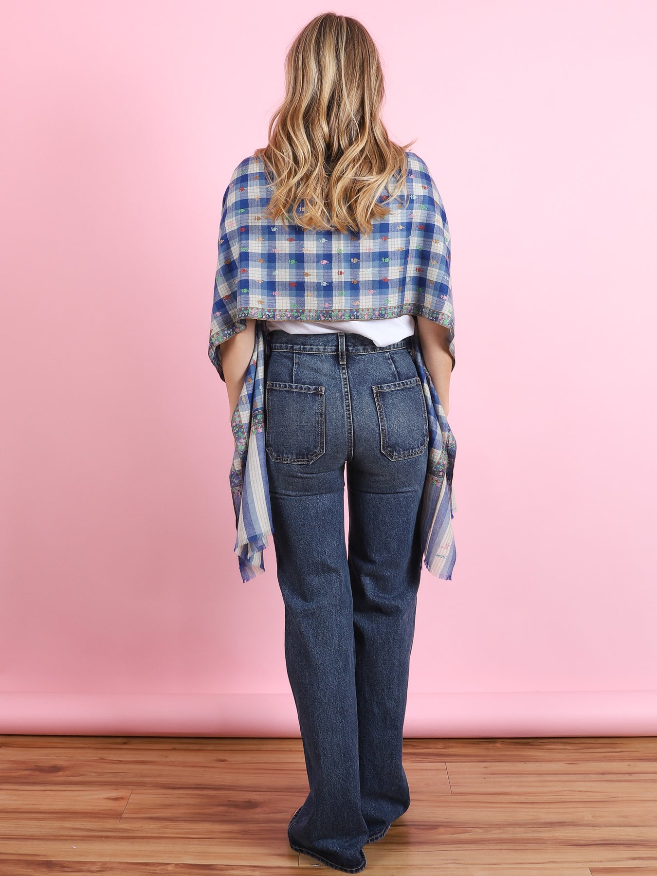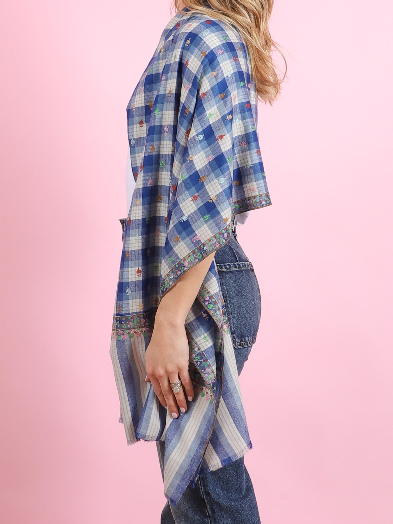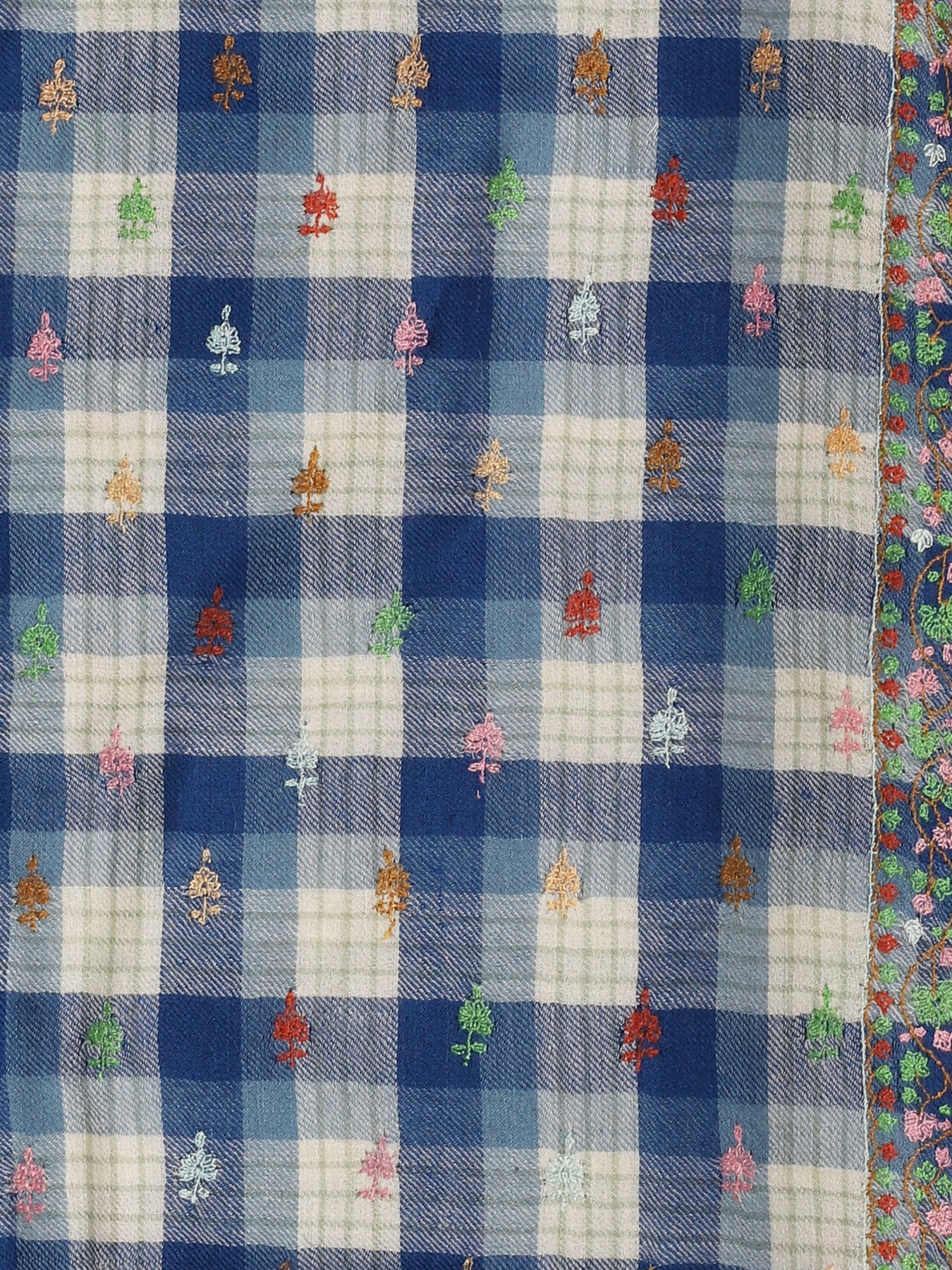 Blue & Cream Check Embroidered Yaser Shawl - CabanaCanary