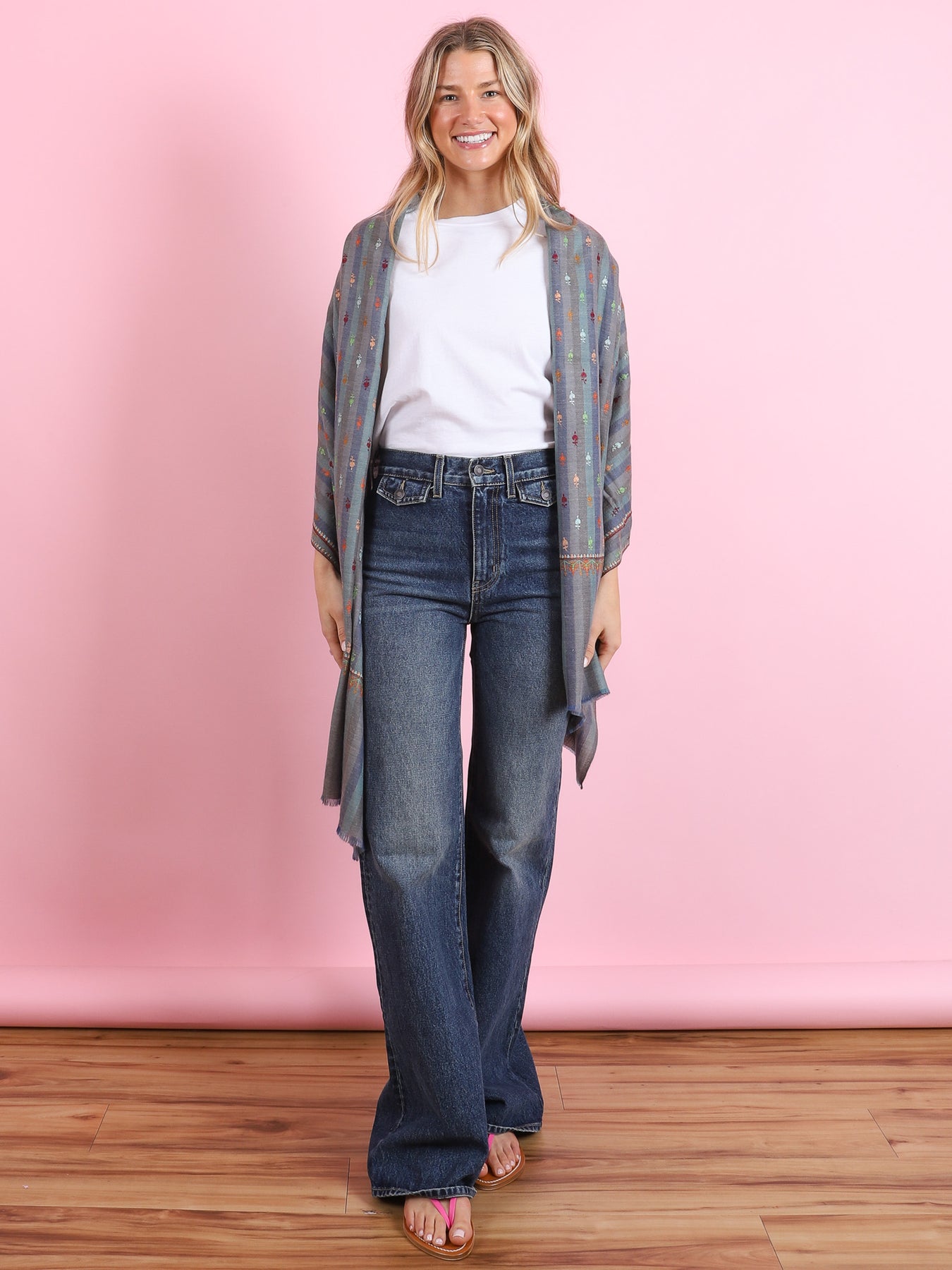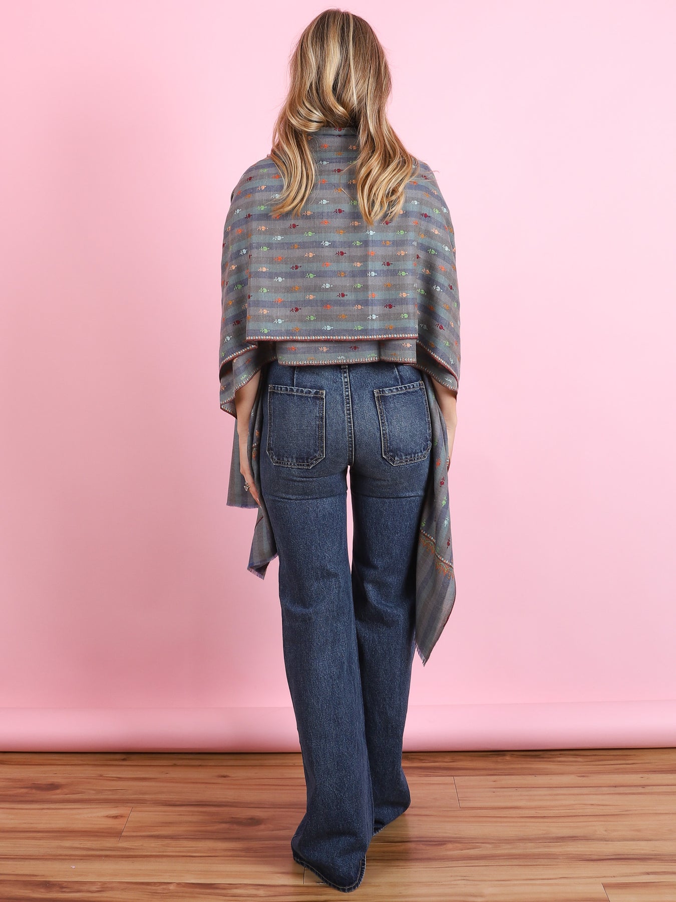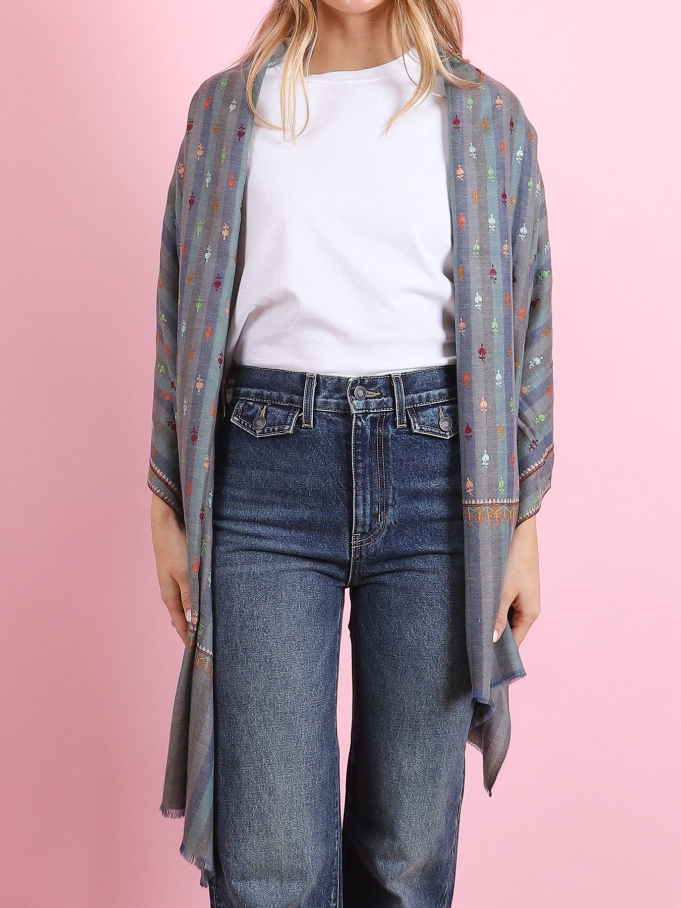 Blue & Gray Multi-Colored Embroidery Yaser Shawl - CabanaCanary