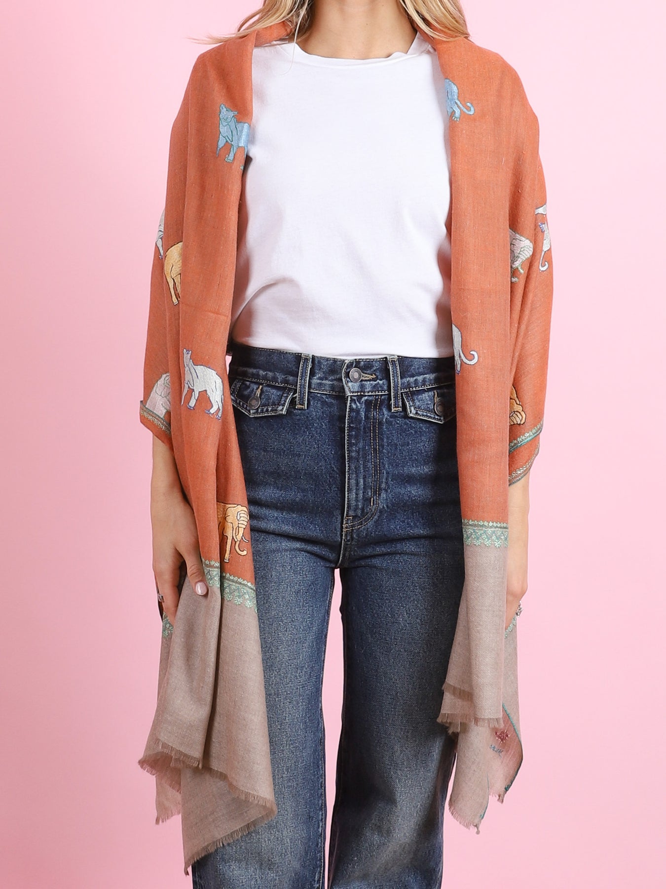 Burnt Orange Animal Yaser Shawl