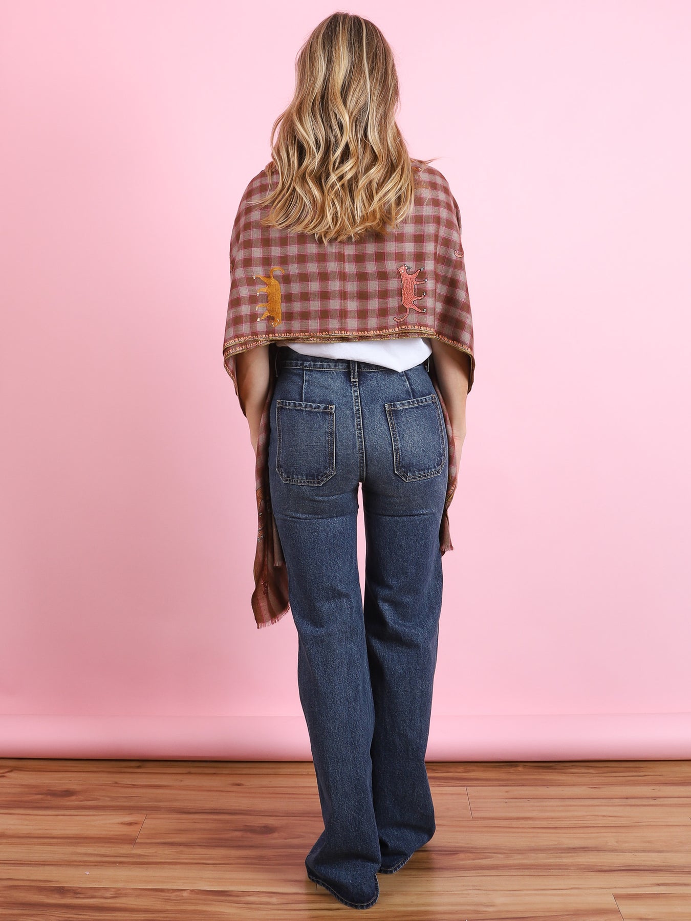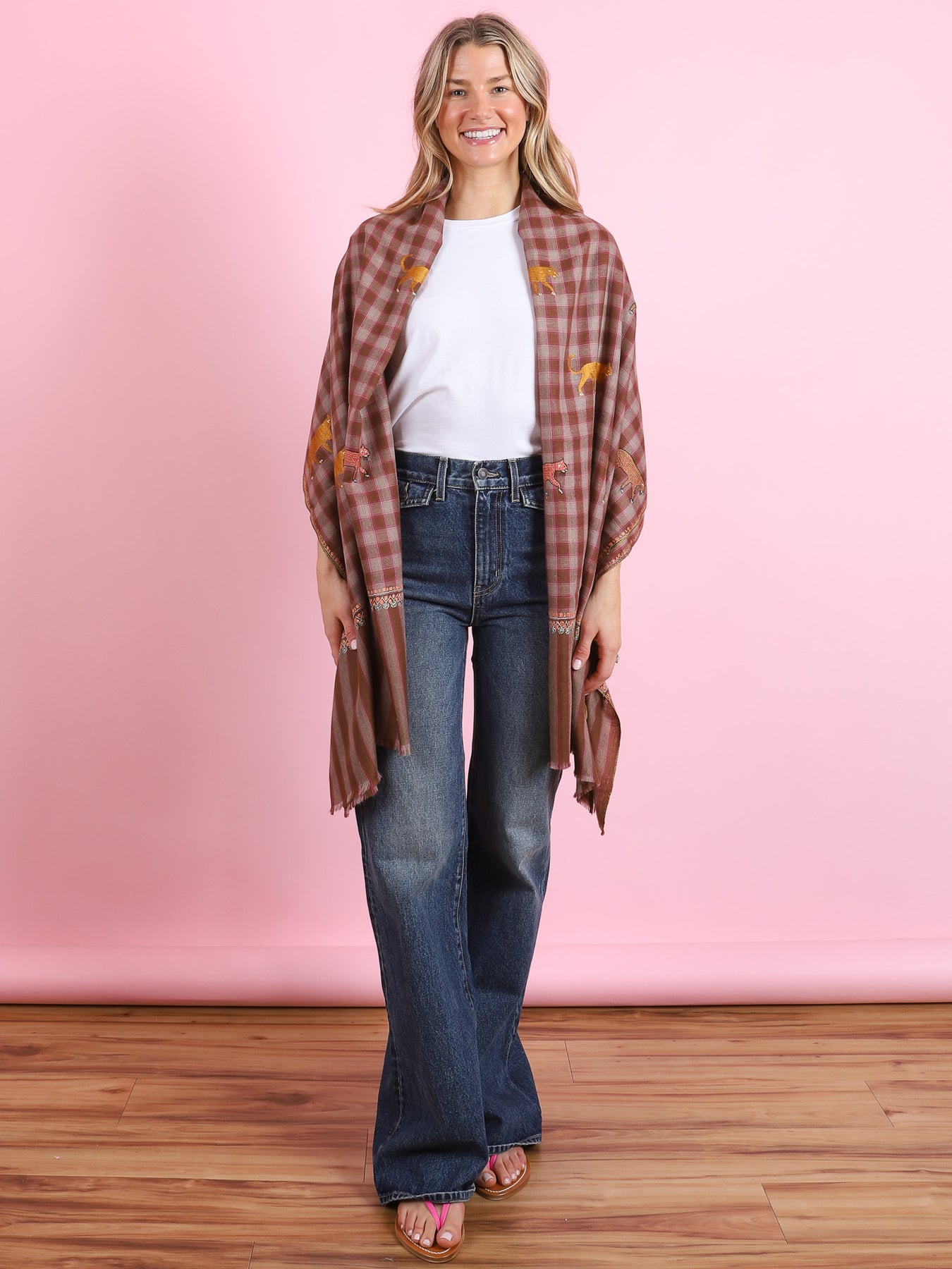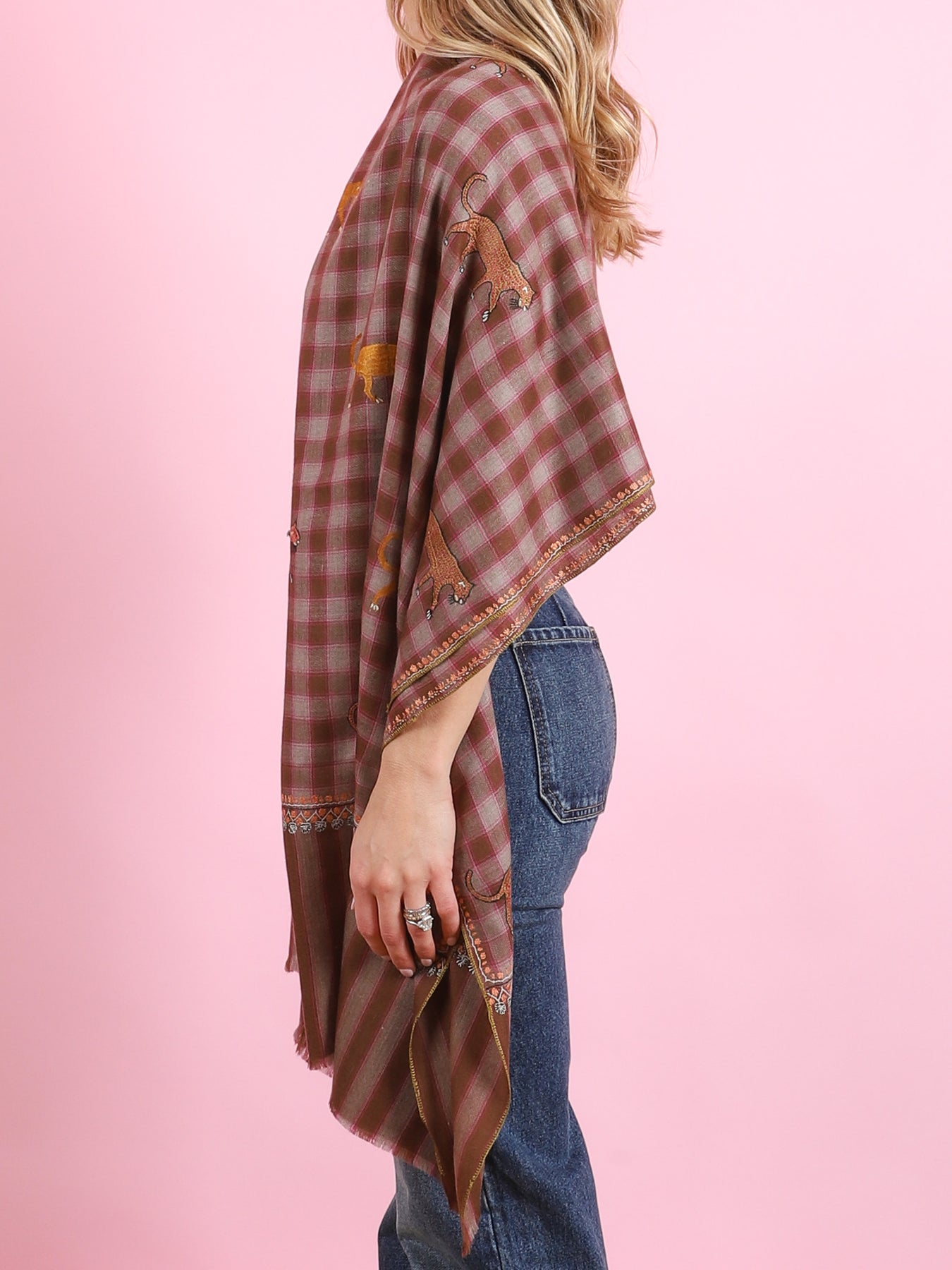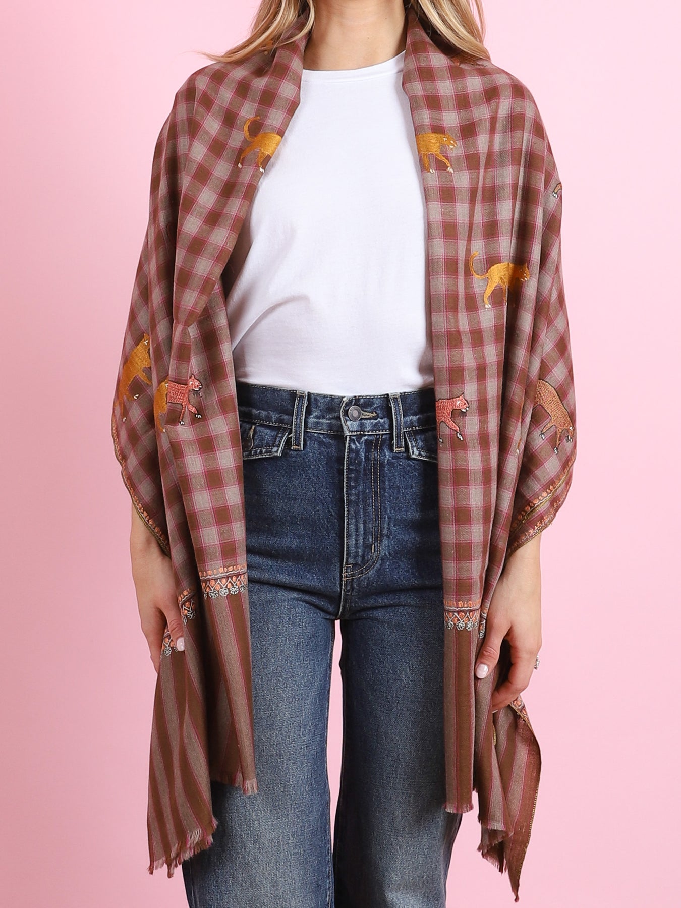 Brown & Pink Checked Animal Yaser Shawl - CabanaCanary