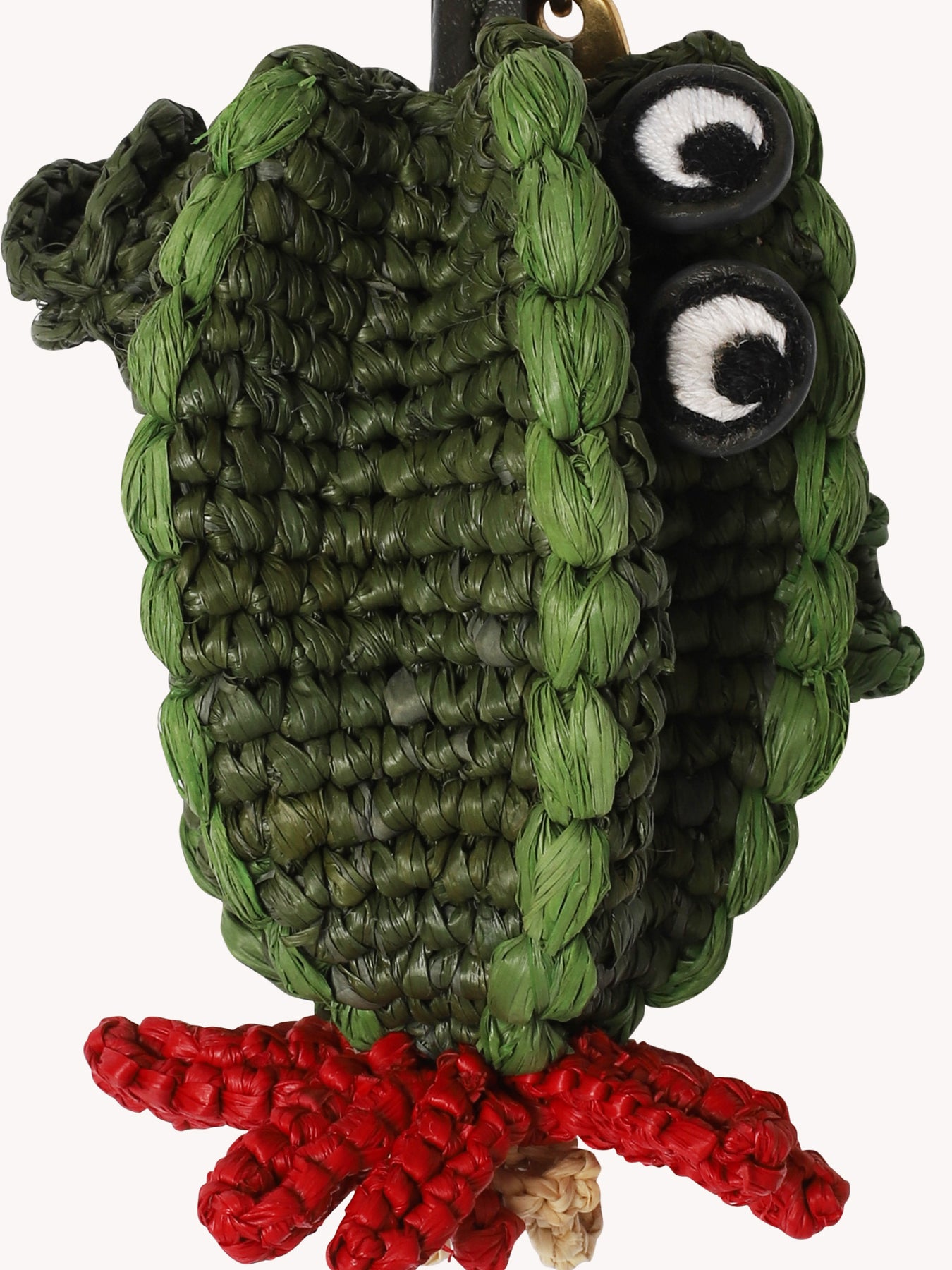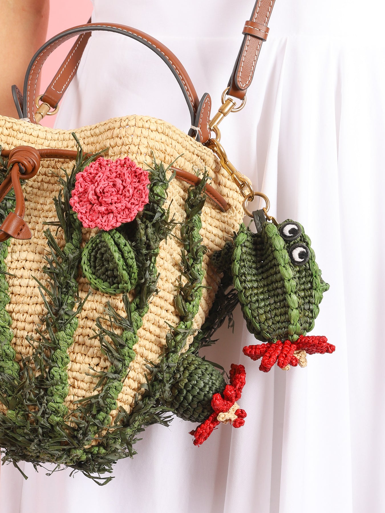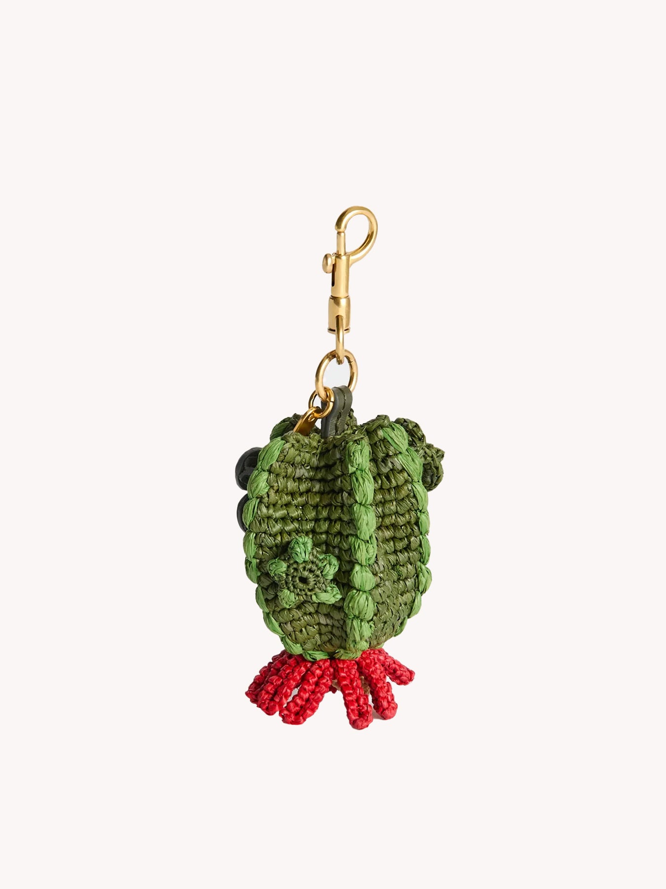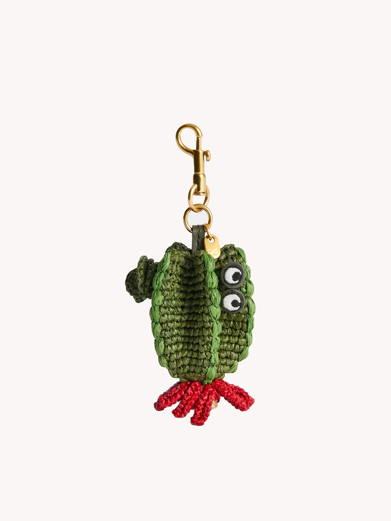 Color, craft and a touch of fun, the cactus charm is the perfect piece to attach to your bag, or key ring via the gold-tone clip, as a standalone statement, or part of a charm collection. Carefully woven in raffia using artisan techniques, the cactus features a bold pink flower and the signature eyes.