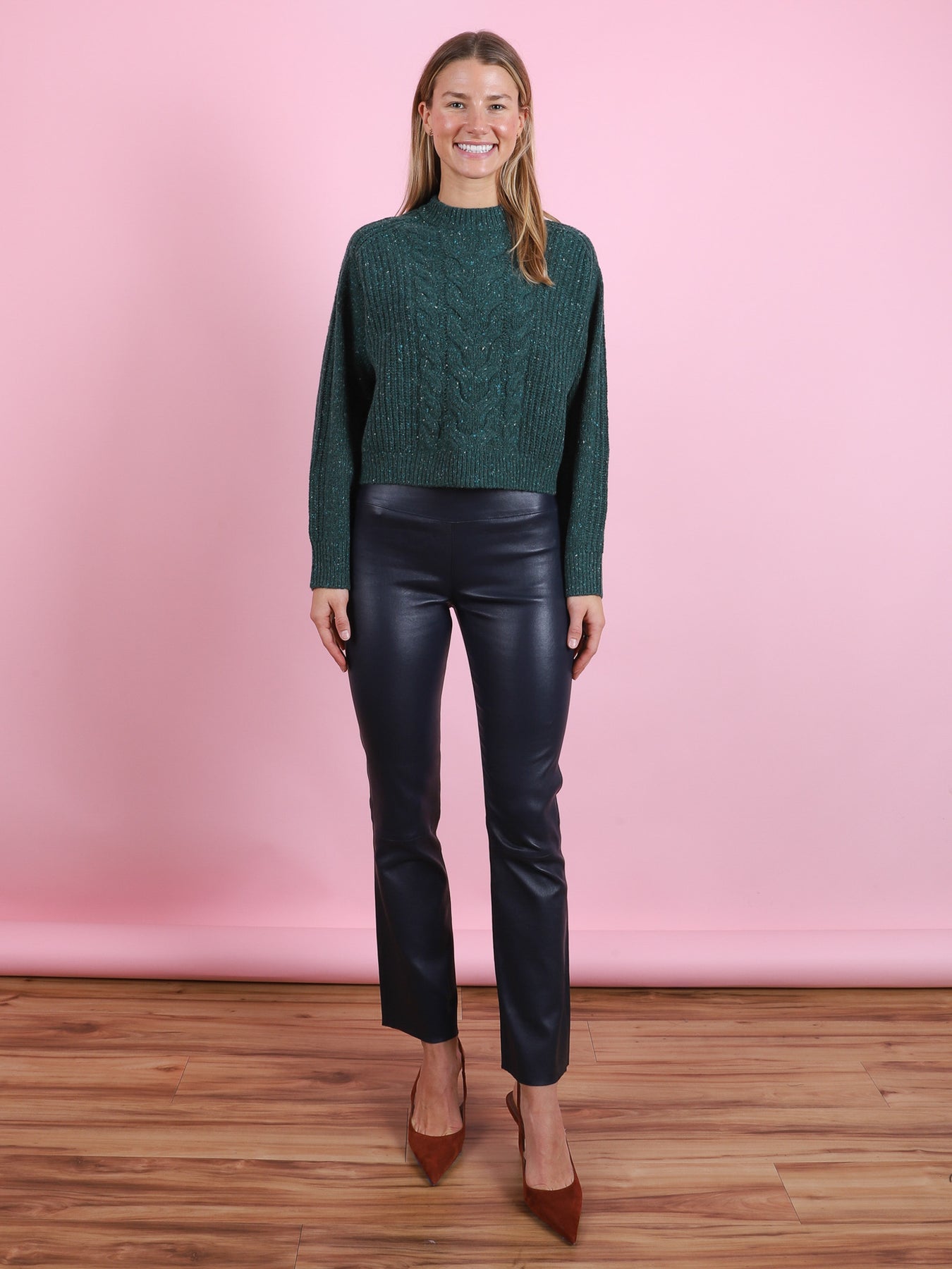 If you don't have a pair (or two) of these leather leggings in your shopping cart, it must mean that you already own them in every color. This is how much we believe in this PERFECT leather legging. Cropped or flare, we can't seem to get enough of them in winter, spring, summer, or fall………all you have to do is call!