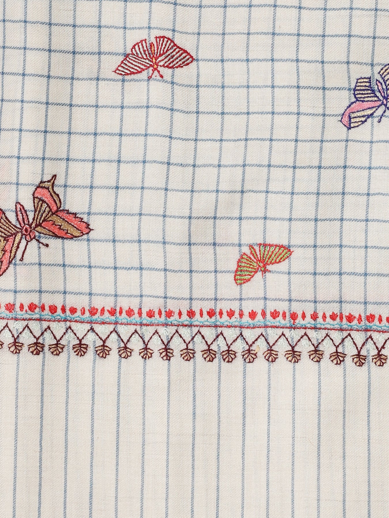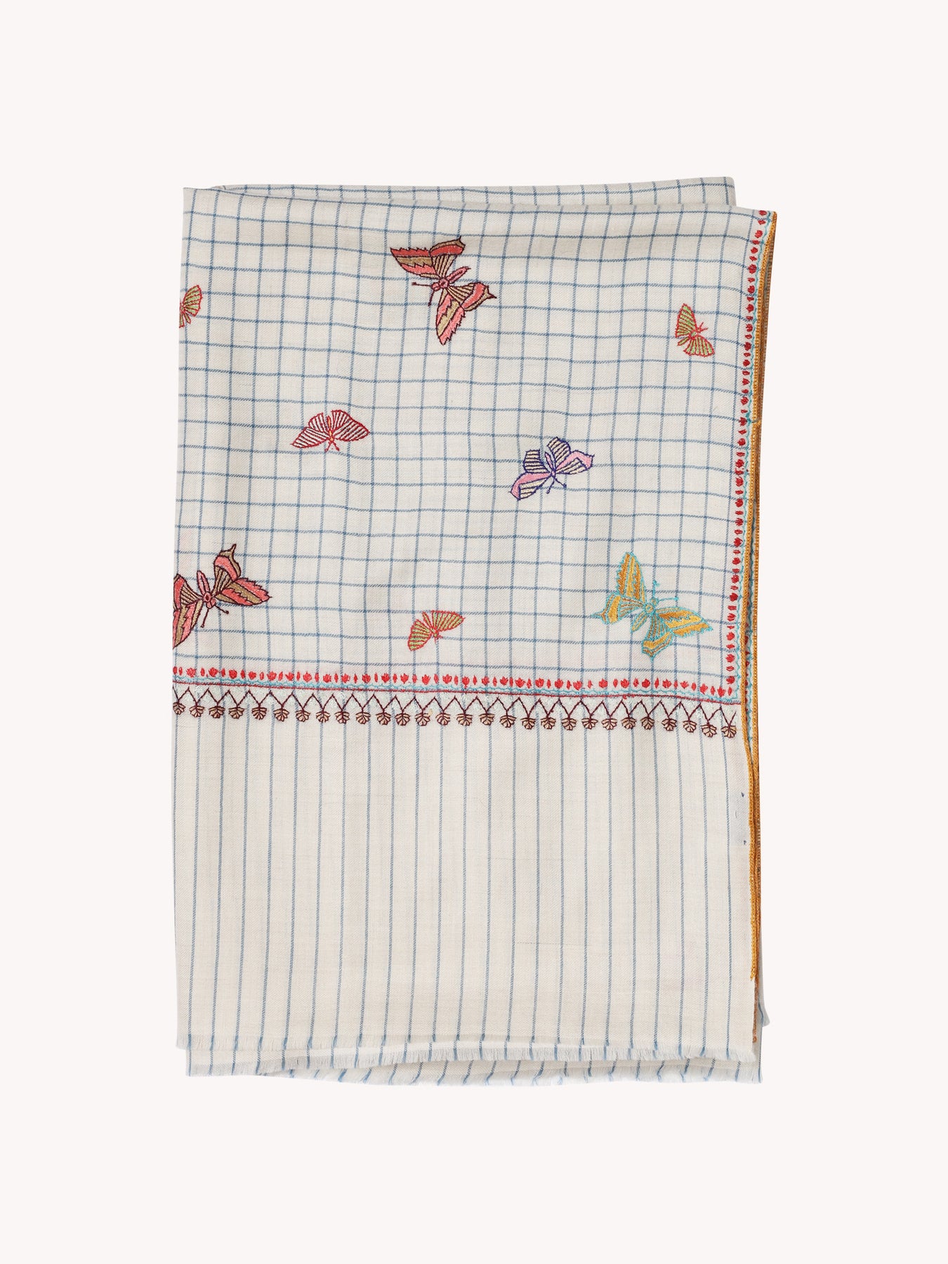 Cream and Blue Check Butterfly Yaser Shawl - CabanaCanary