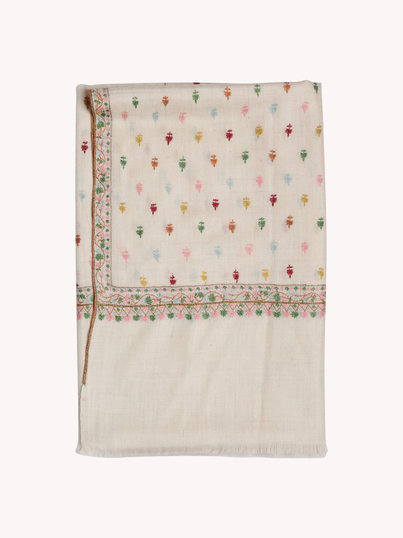 Cream Multi-Colored Embroidered Yaser Shawl