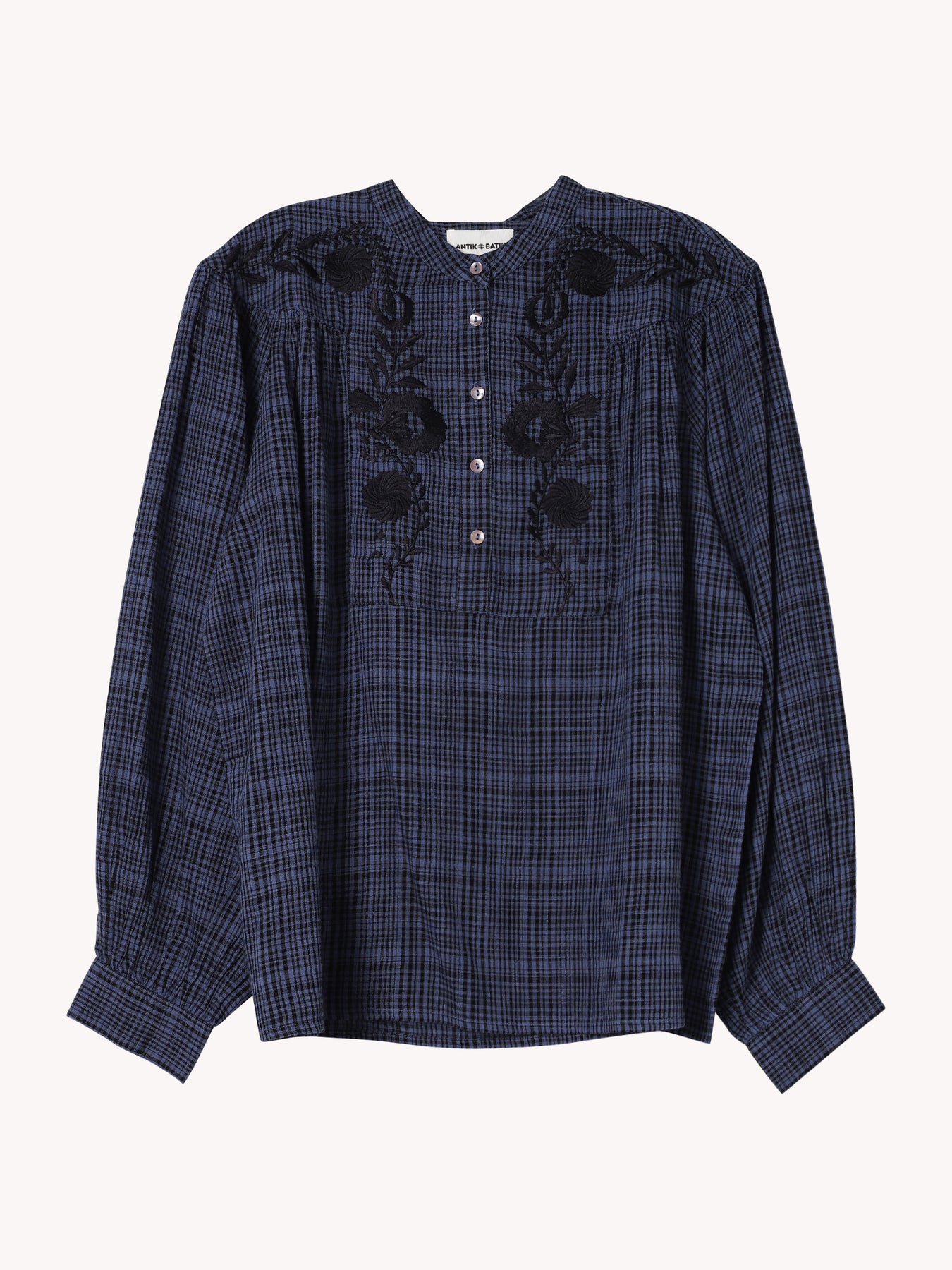 Embroidered blouse in cotton and viscose. Cuffs closed with a button.