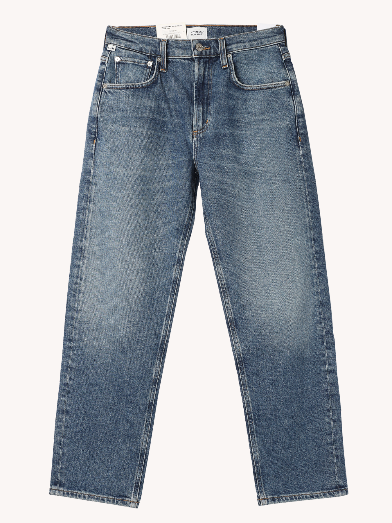 The ‘Delfina’ is a high-rise straight leg crafted from comfort stretch denim with a soft, broken-in hand. Designed to flatter while allowing ease, it offers a clean silhouette that moves effortlessly with the body. The Cici wash—a dark-to-medium indigo with soft fading and marbling—adds lived-in character. Ideal styled with crisp shirting or a tucked knit.