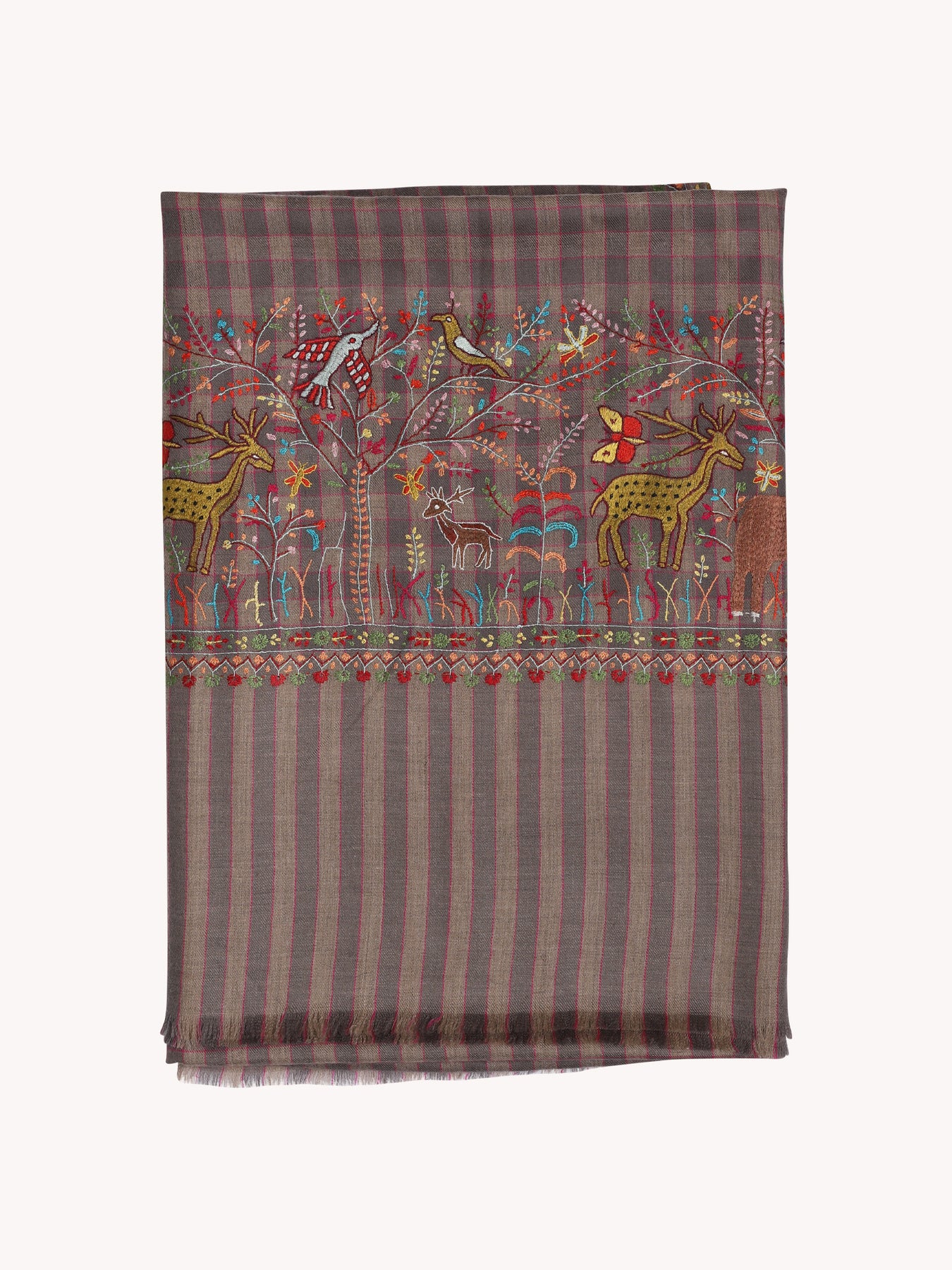 Gray Stripe Animal Landscape Yaser Shawl - CabanaCanary