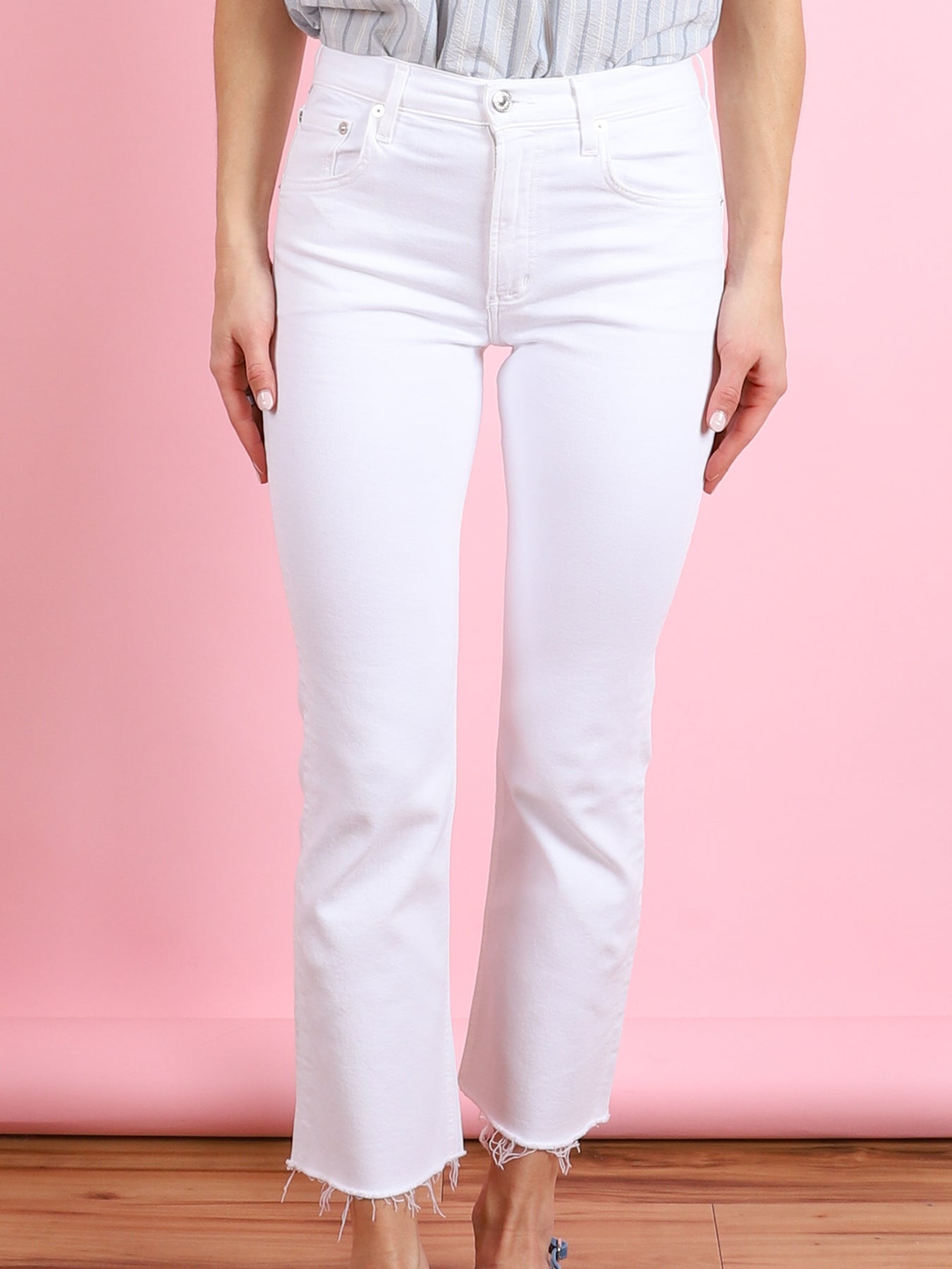 The Isola features a flattering mid rise with a close fit through the leg and subtle bootcut flare. This cropped fit hits right above the ankle, making them the perfect pair to show off your shoe of choice. This transitional style is sure to be your new closet staple.