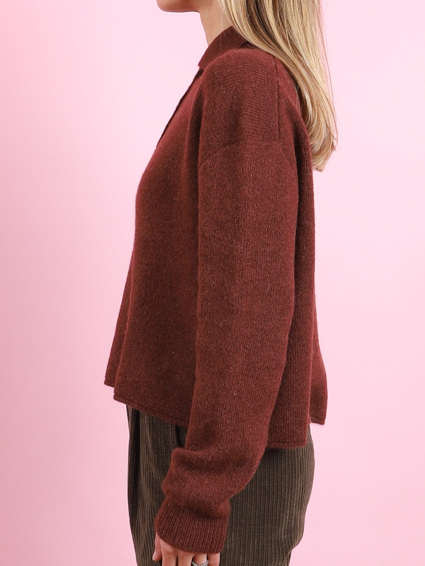 58% alpaca, 27% polyamide, 15% virgin wool. Made in Spain.