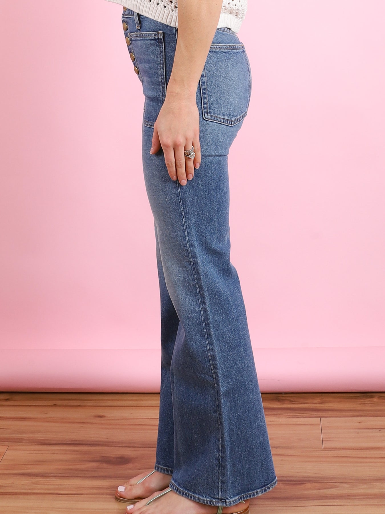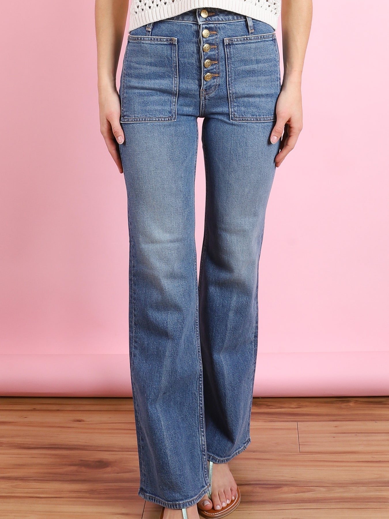 Model is 5'7," 25" waist, 34" hips - wearing a size 25.  Fits true to size.