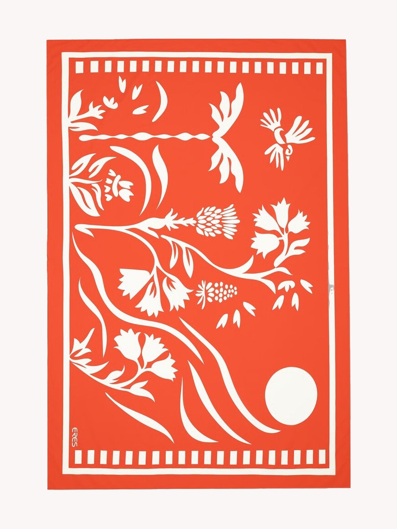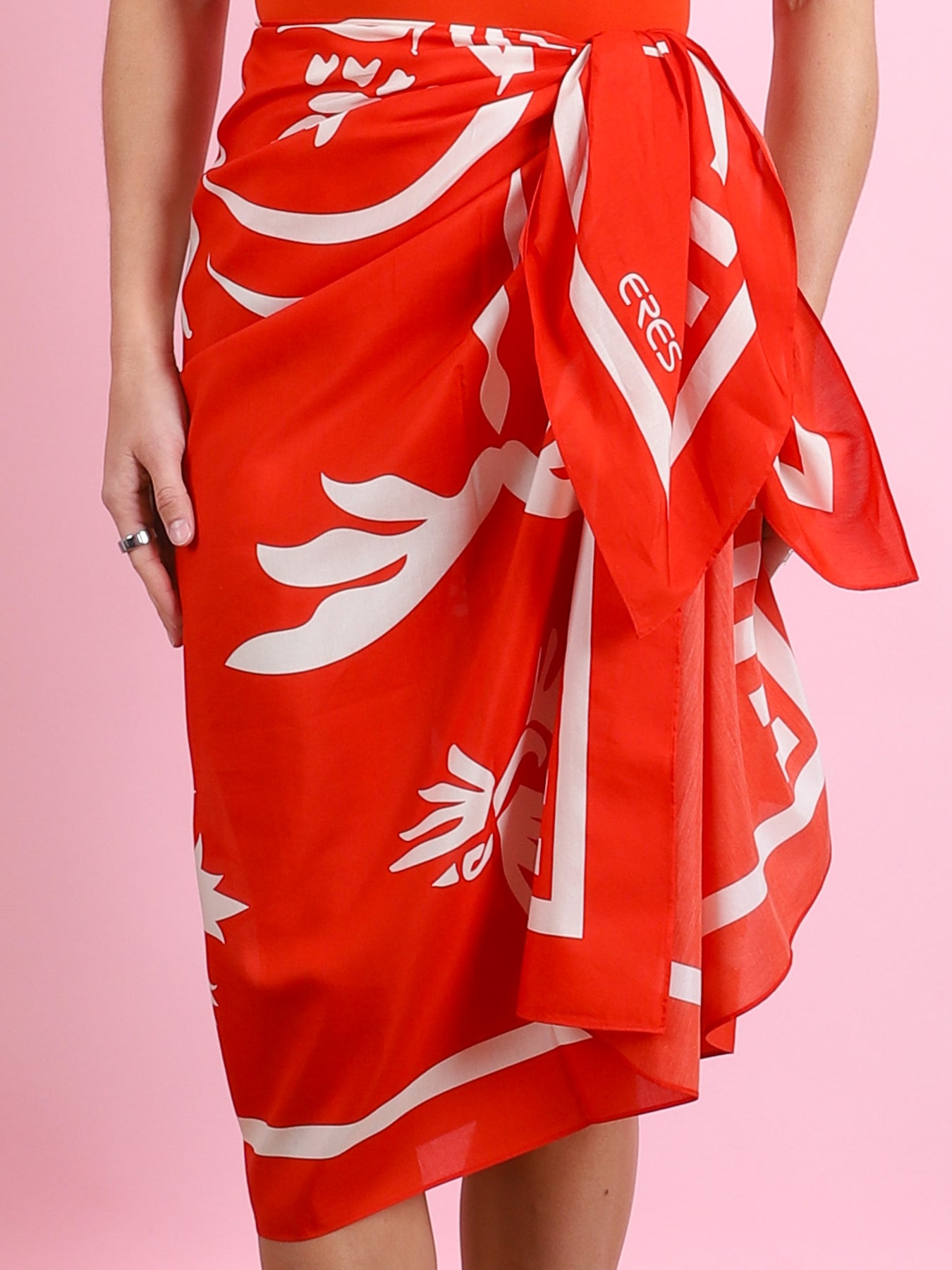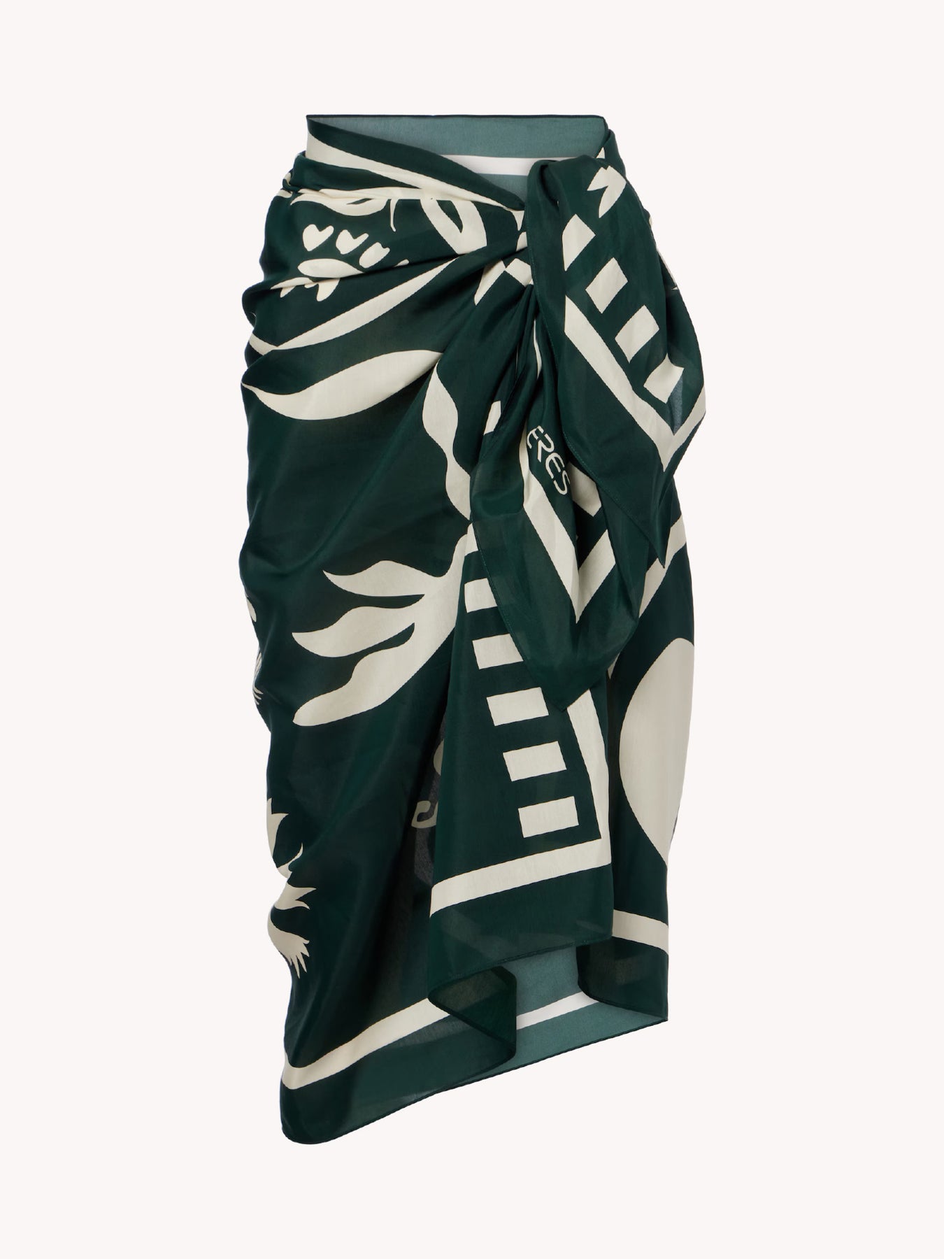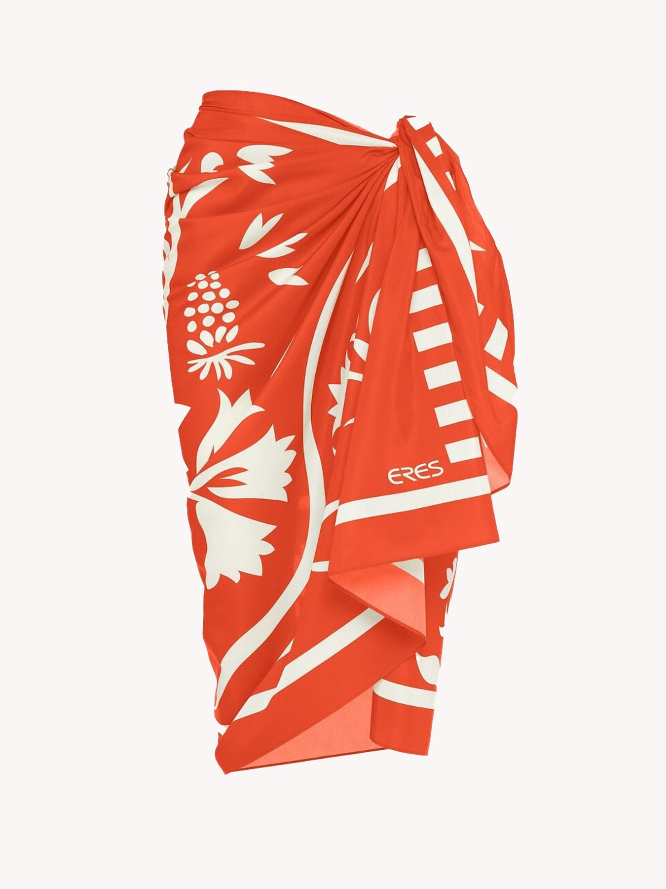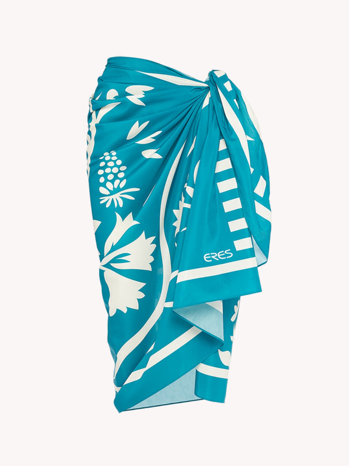 The Mandapa sarong is decorated this season with stylised plant prints, inspired by Indian palaces and their sumptuous gardens. Tied around the waist, it elevates any beach look.