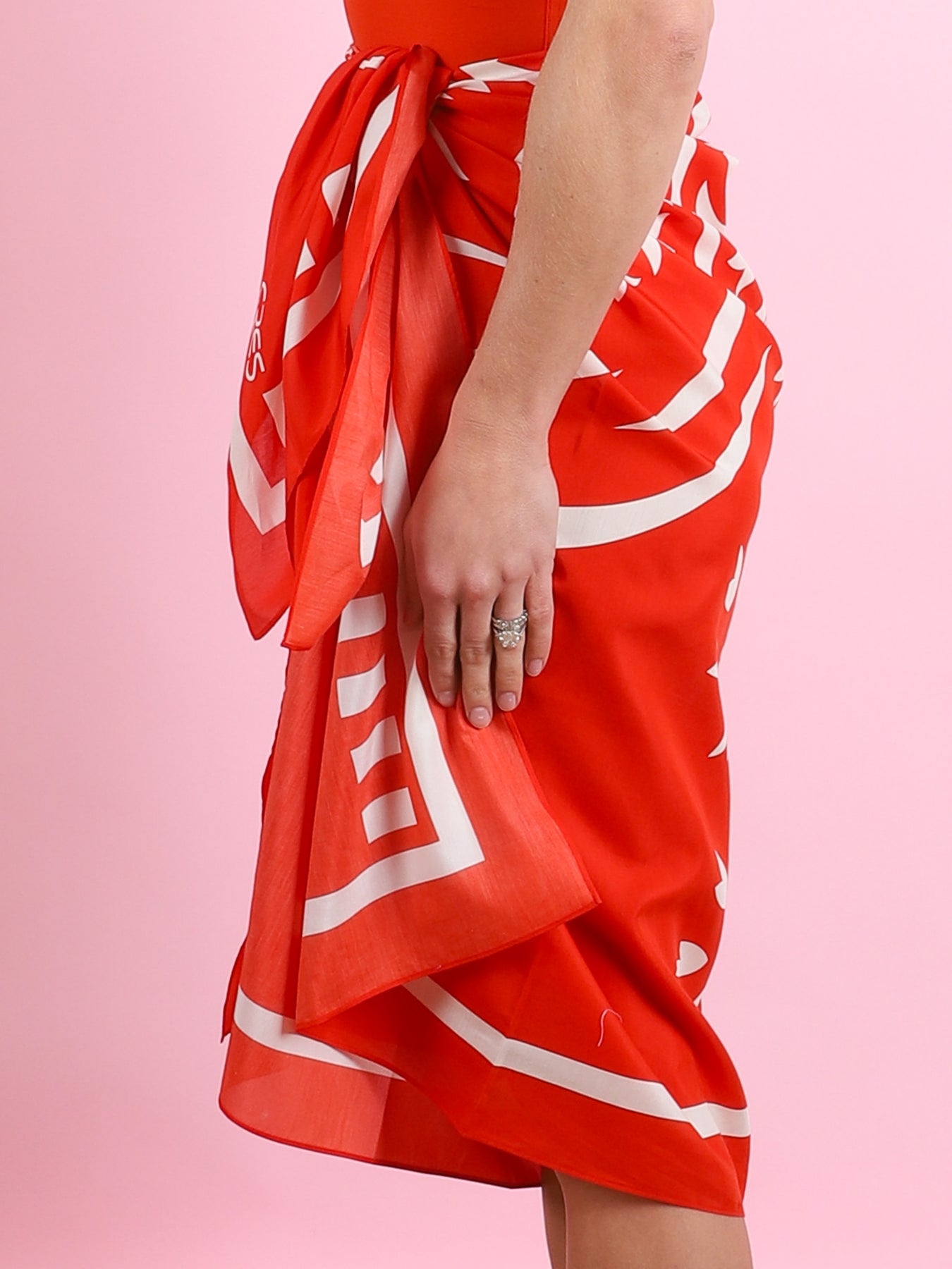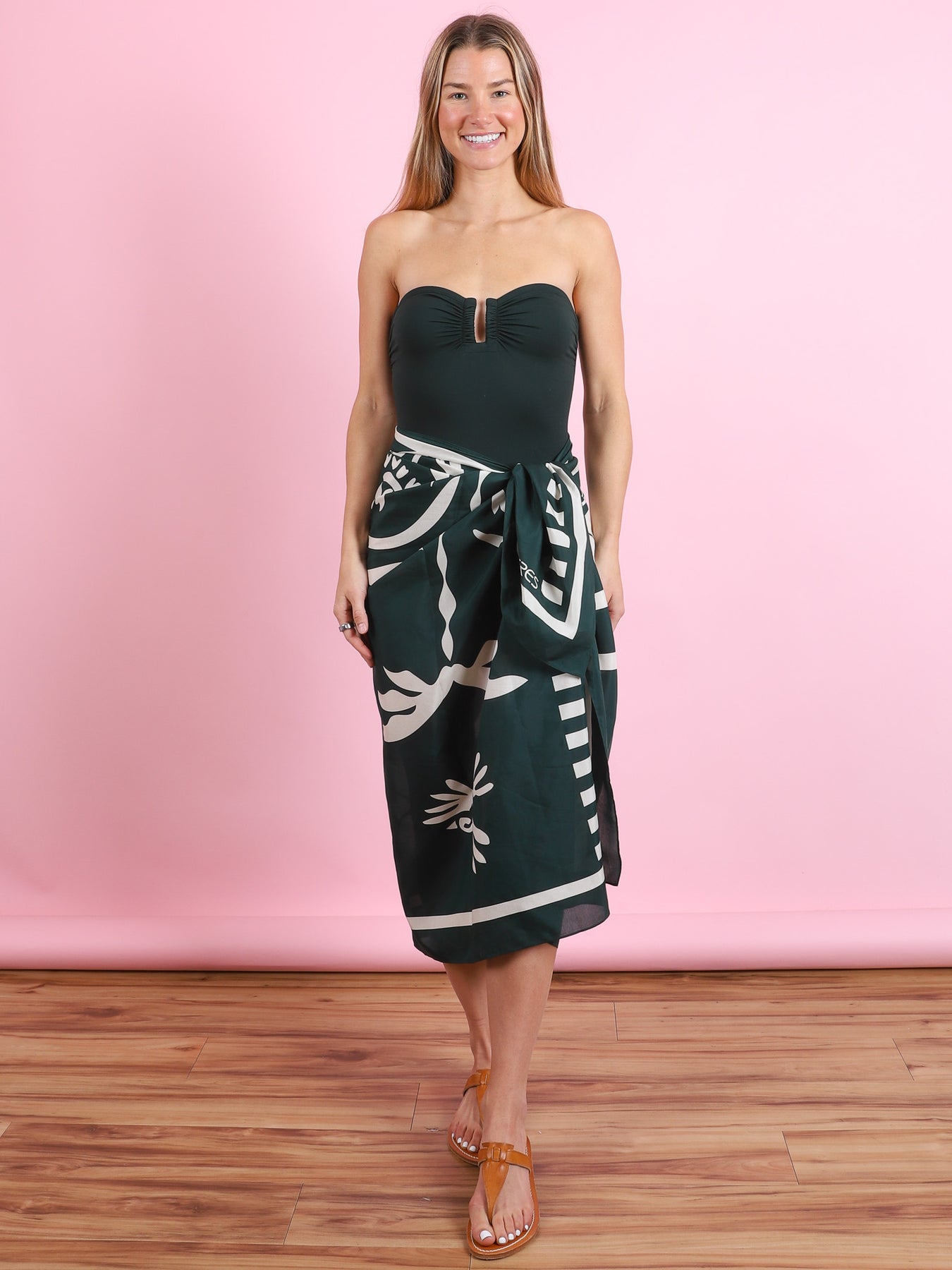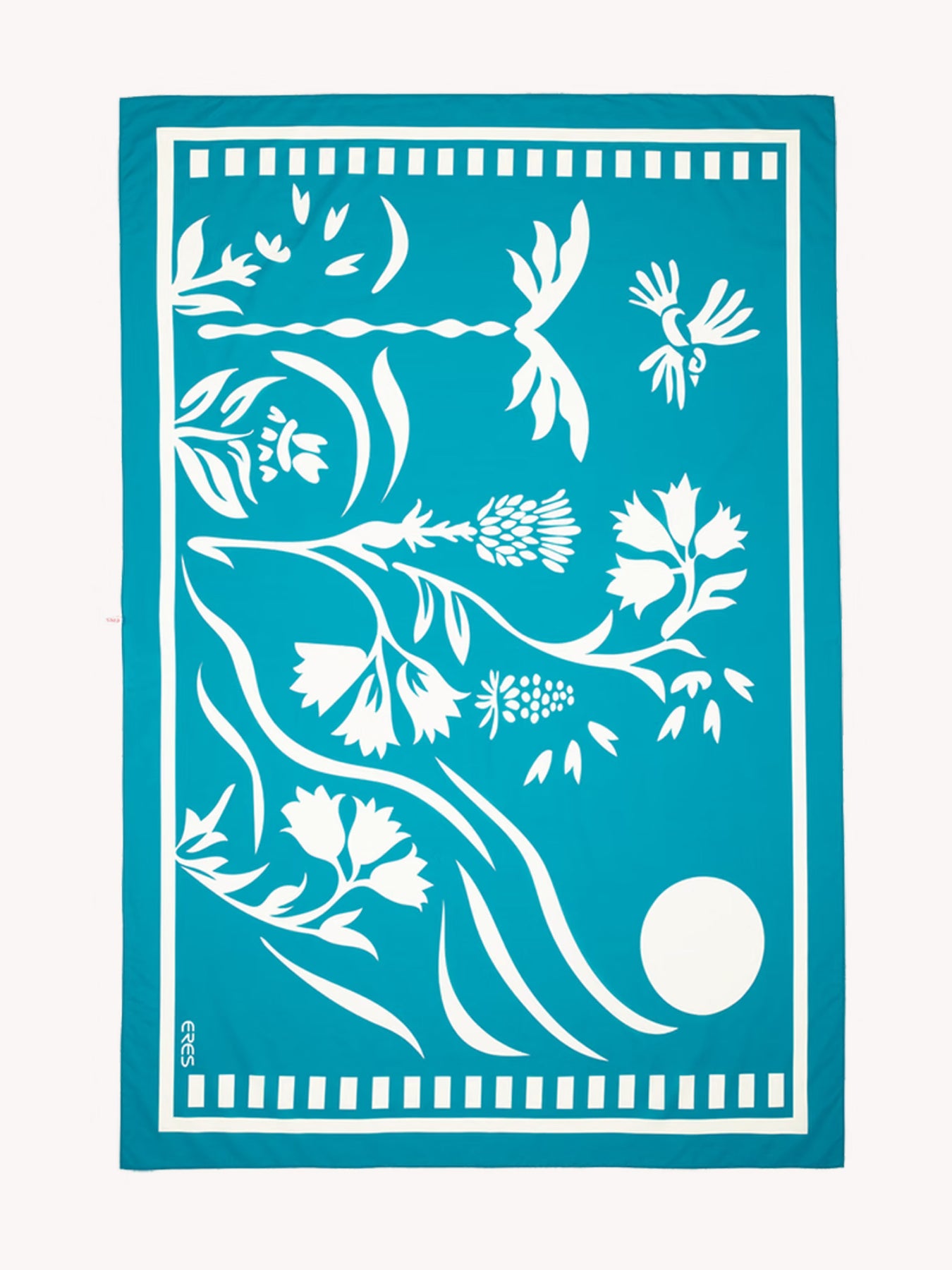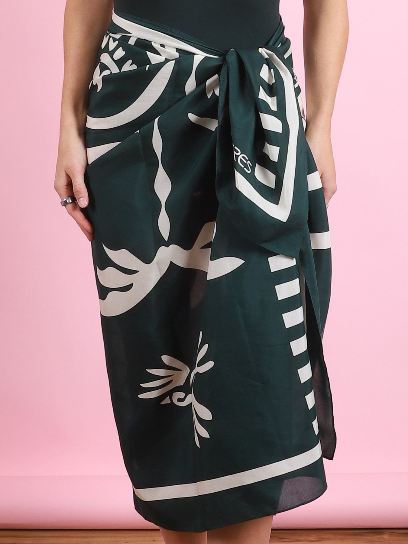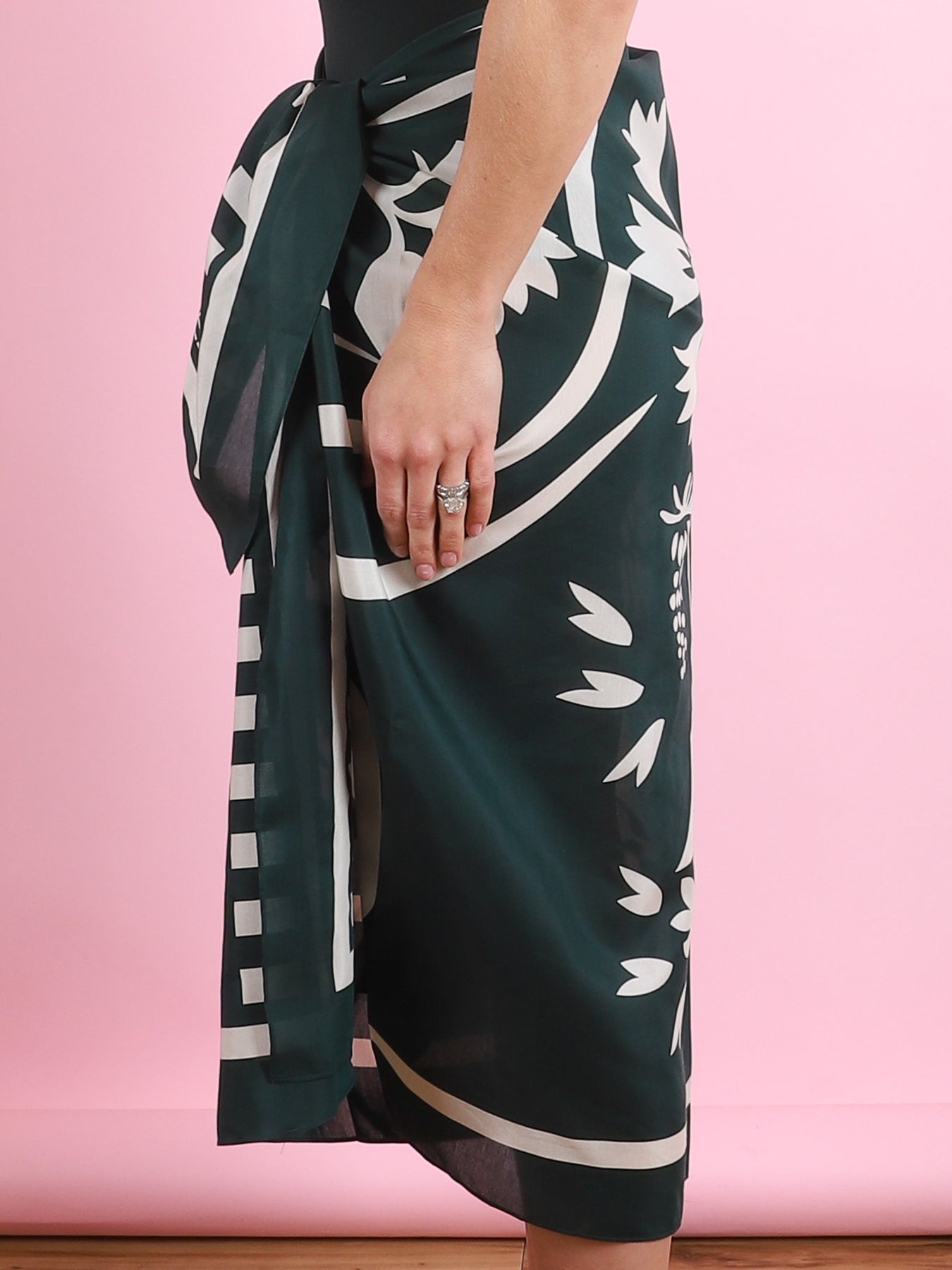 The Mandapa sarong is decorated this season with stylised plant prints, inspired by Indian palaces and their sumptuous gardens. Tied around the waist, it elevates any beach look.