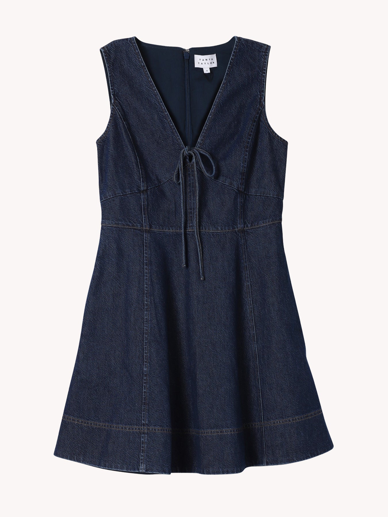 Designed in a crisp medium indigo denim, Tanya Taylor's Nova Dress is an elevated mini designed to transition you into the cooler fall months and beyond. Featuring a v-neck with a tie at the front and a feminine A-line fit, Nova is a classic denim mini dress with a polished twist. Style with flats or boots for a transitional look.