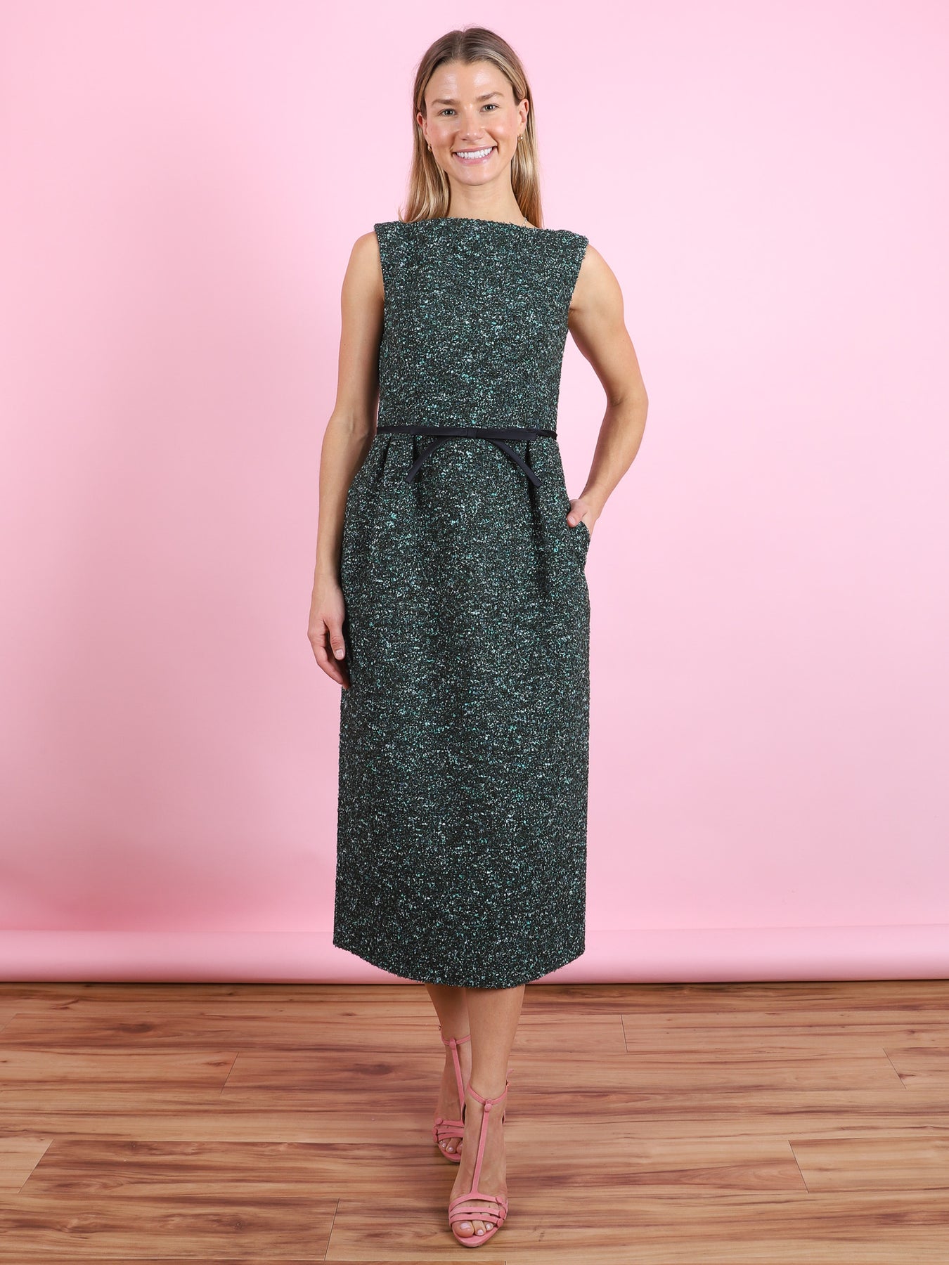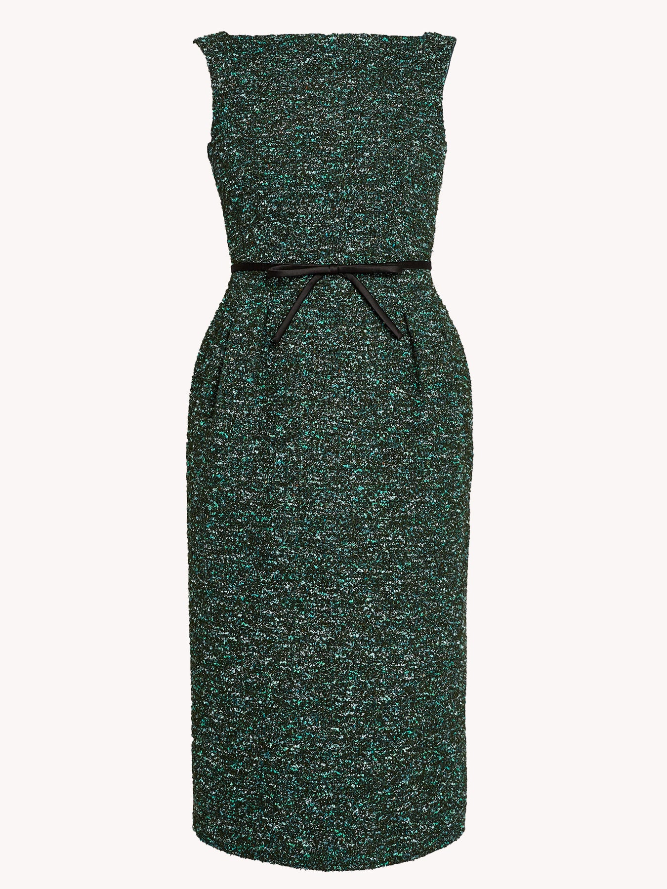 32% wool, 24% cotton, 16% polyacrylic, 12% polyester, 10% polyamide, 6% silk. 73% acetate, 27% silk lining. 100% polyester belt.