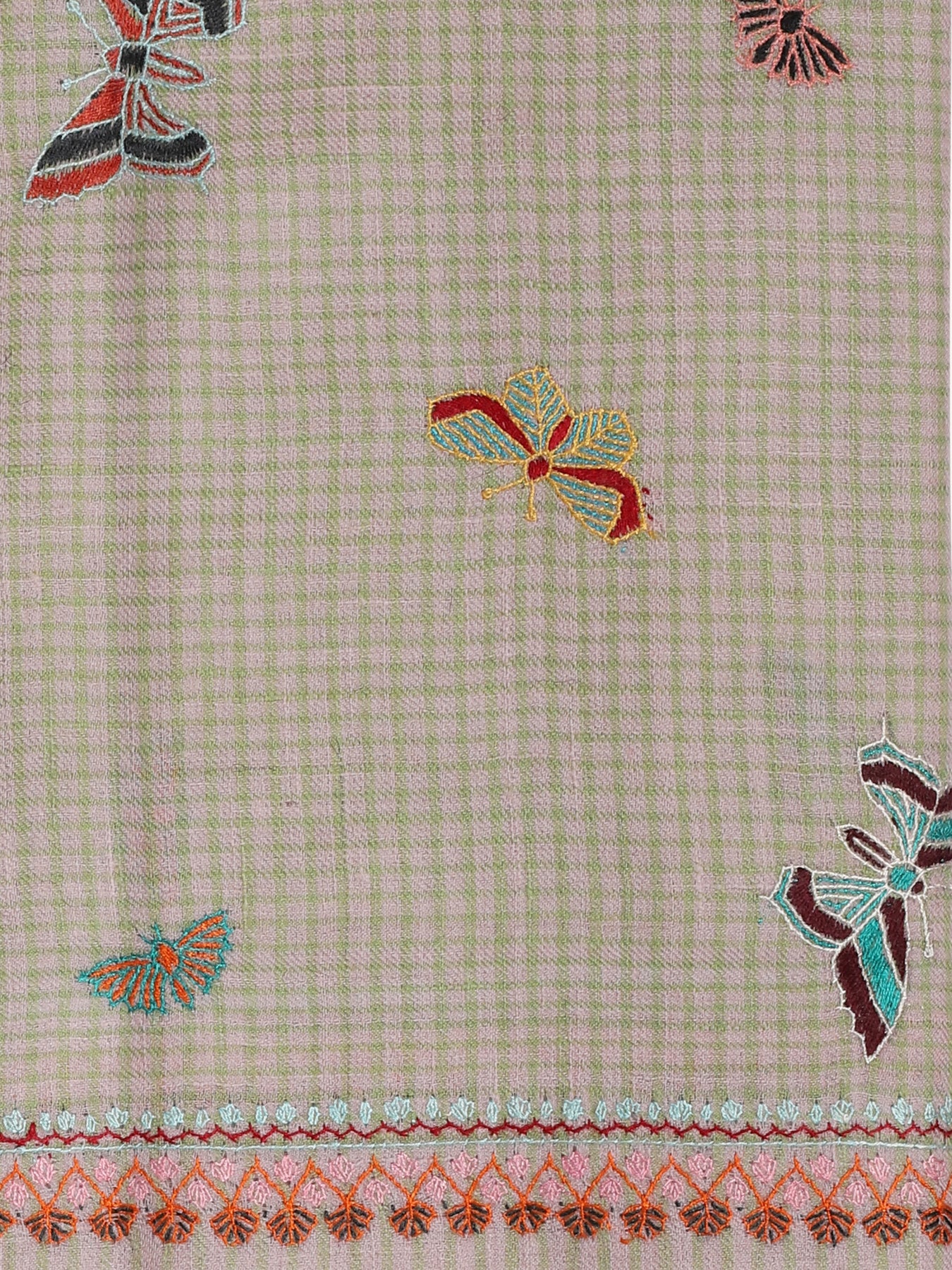 Pink and Green Check Multicolored Butterfly Yaser Shawl