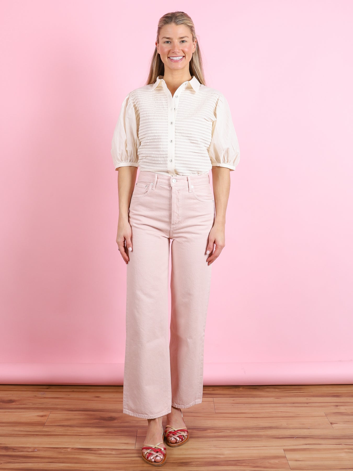 Model is 5'7," 25" waist, 35" hips - wearing a size 25. Fits true to size.
