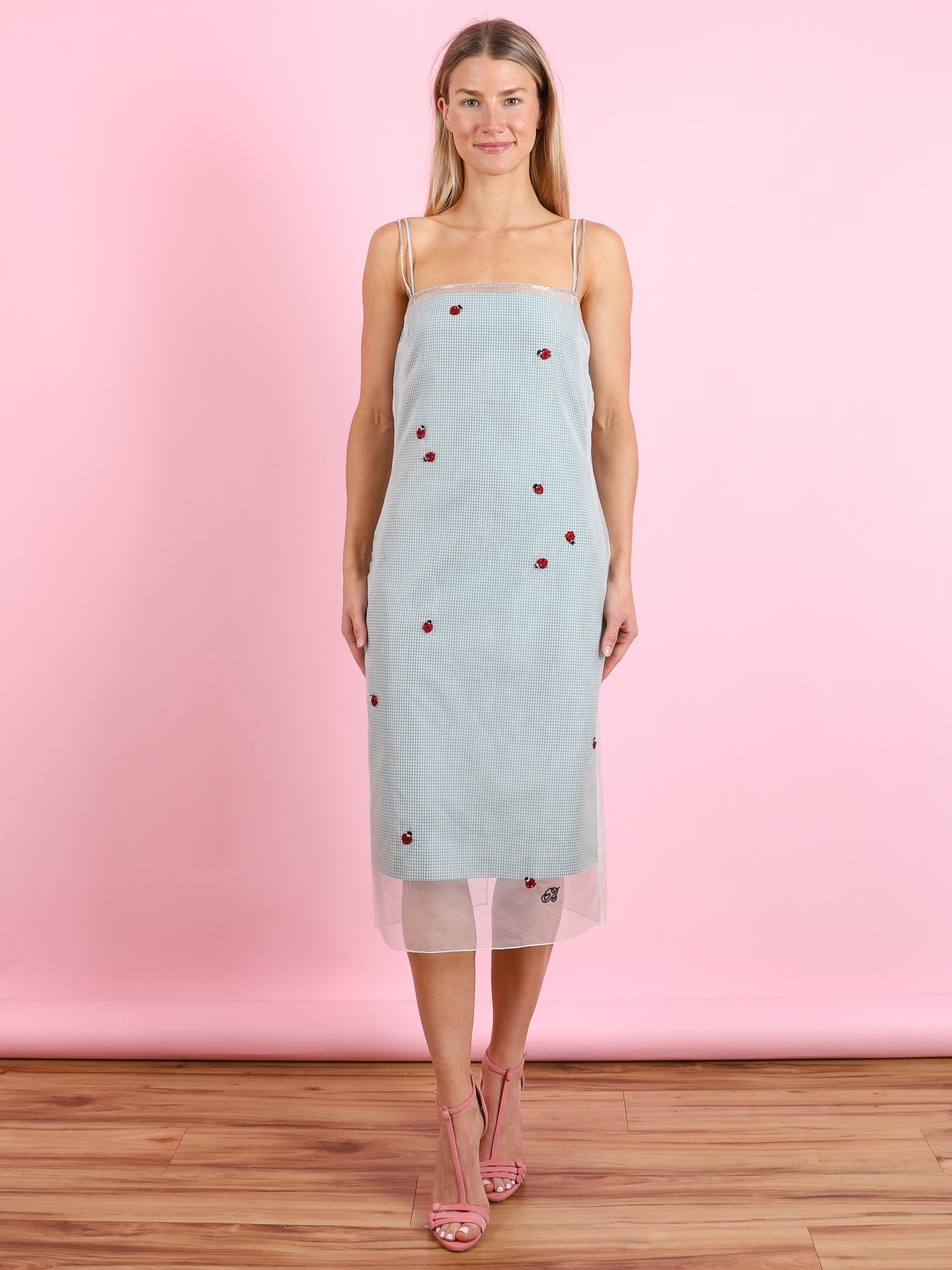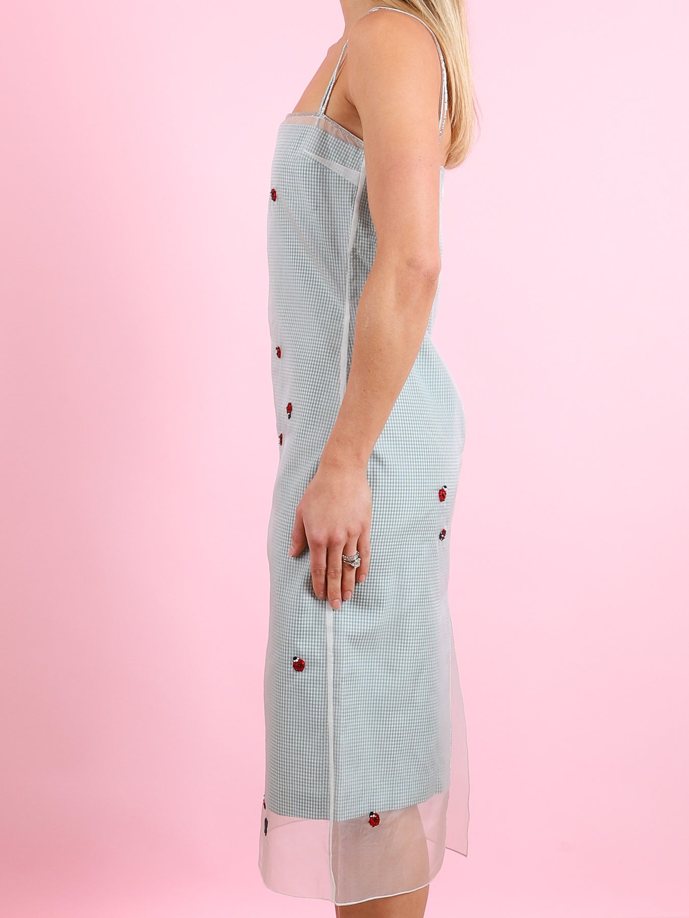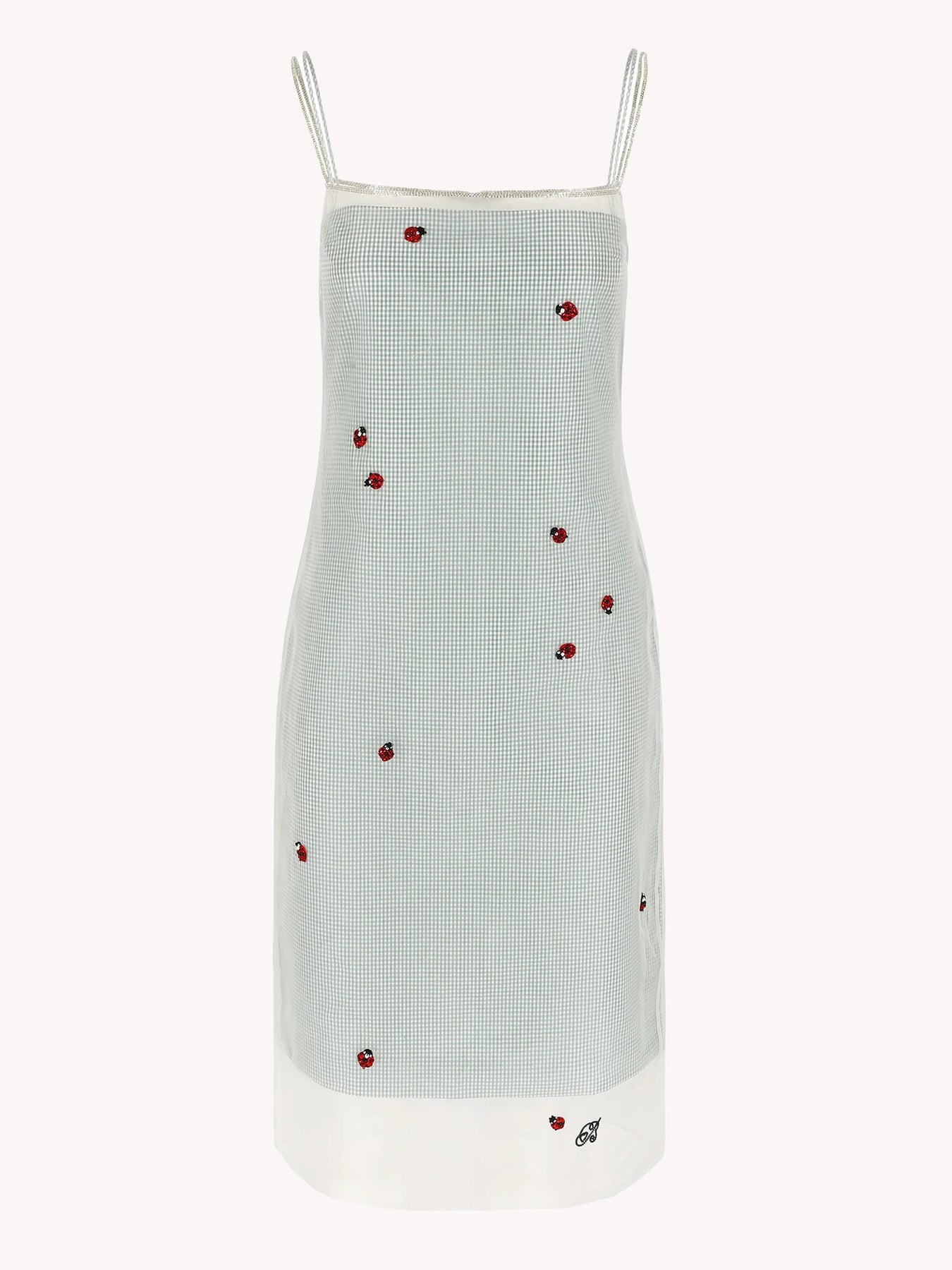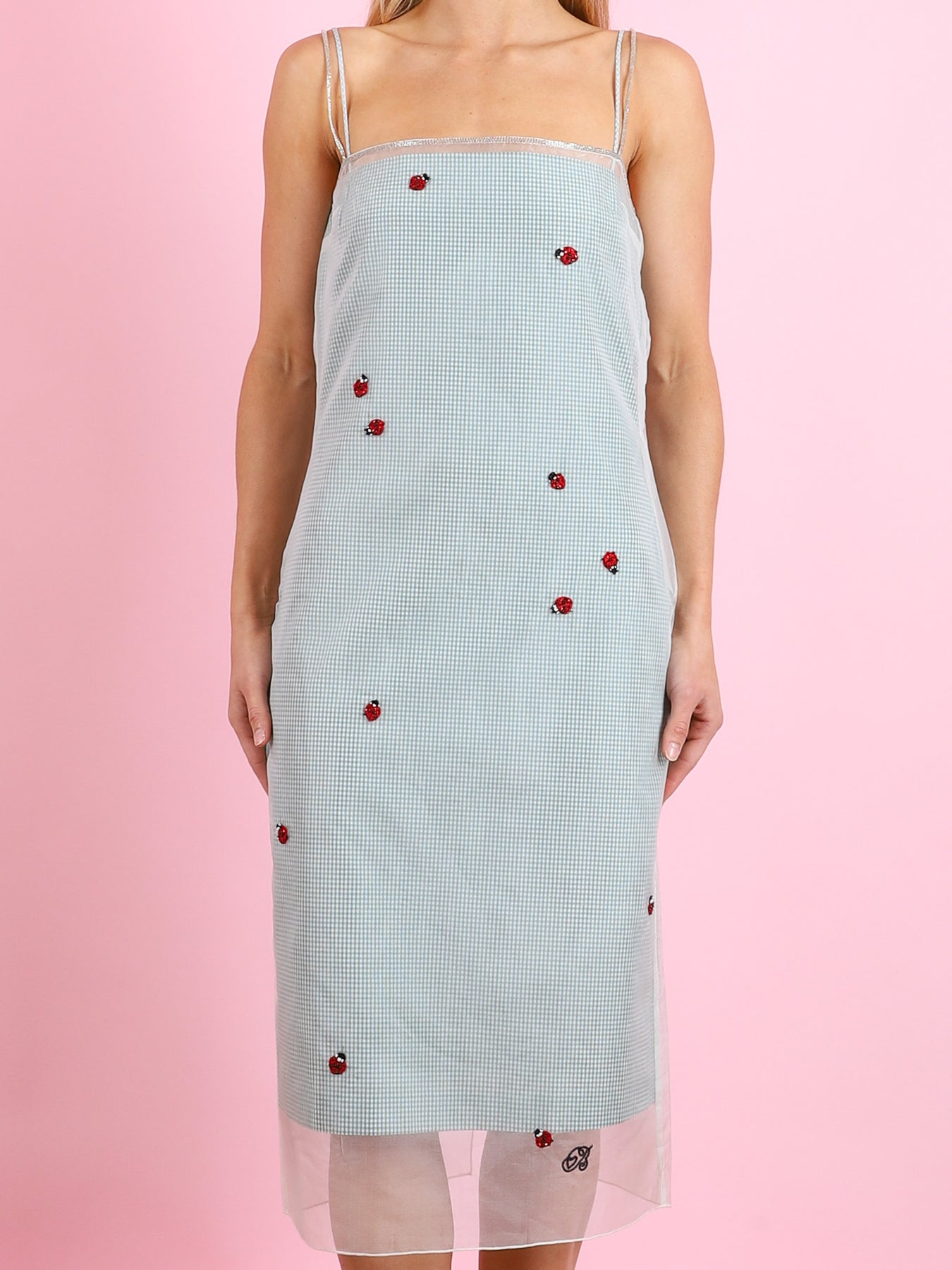 100% silk overlay. 100% cotton underlayer. 100% viscose lining.