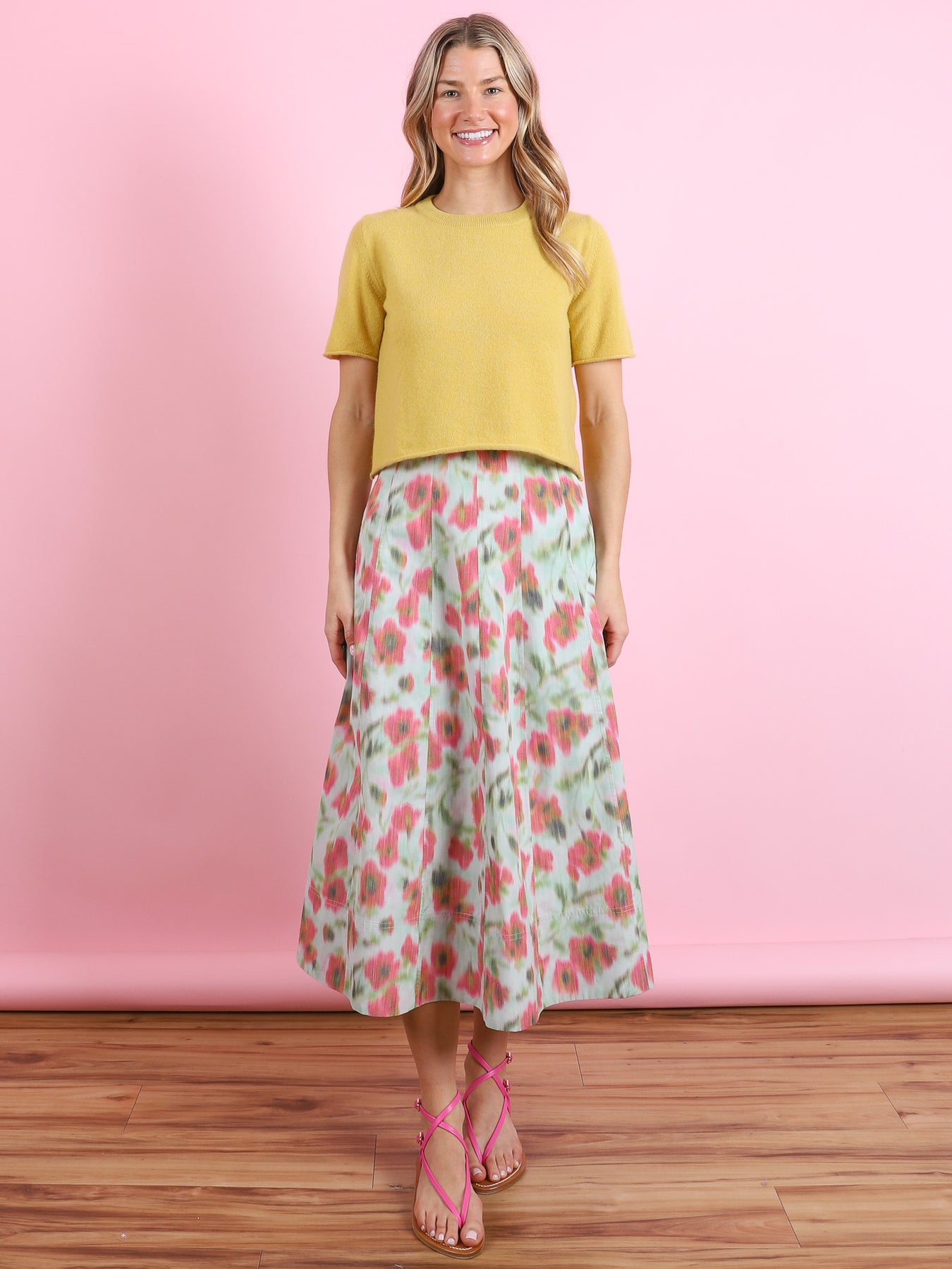A standout silhouette of the spring season, and a versatile update to our best-selling Tavia Dress, the Tavia Skirt the perfect styling separate for spring in a fresh floral printed taffeta. Featuring an A-line silhouette, on seam pockets, and a paneled seam detailing, Tavia is thoughtfully designed with perfect proportions and refined details throughout.