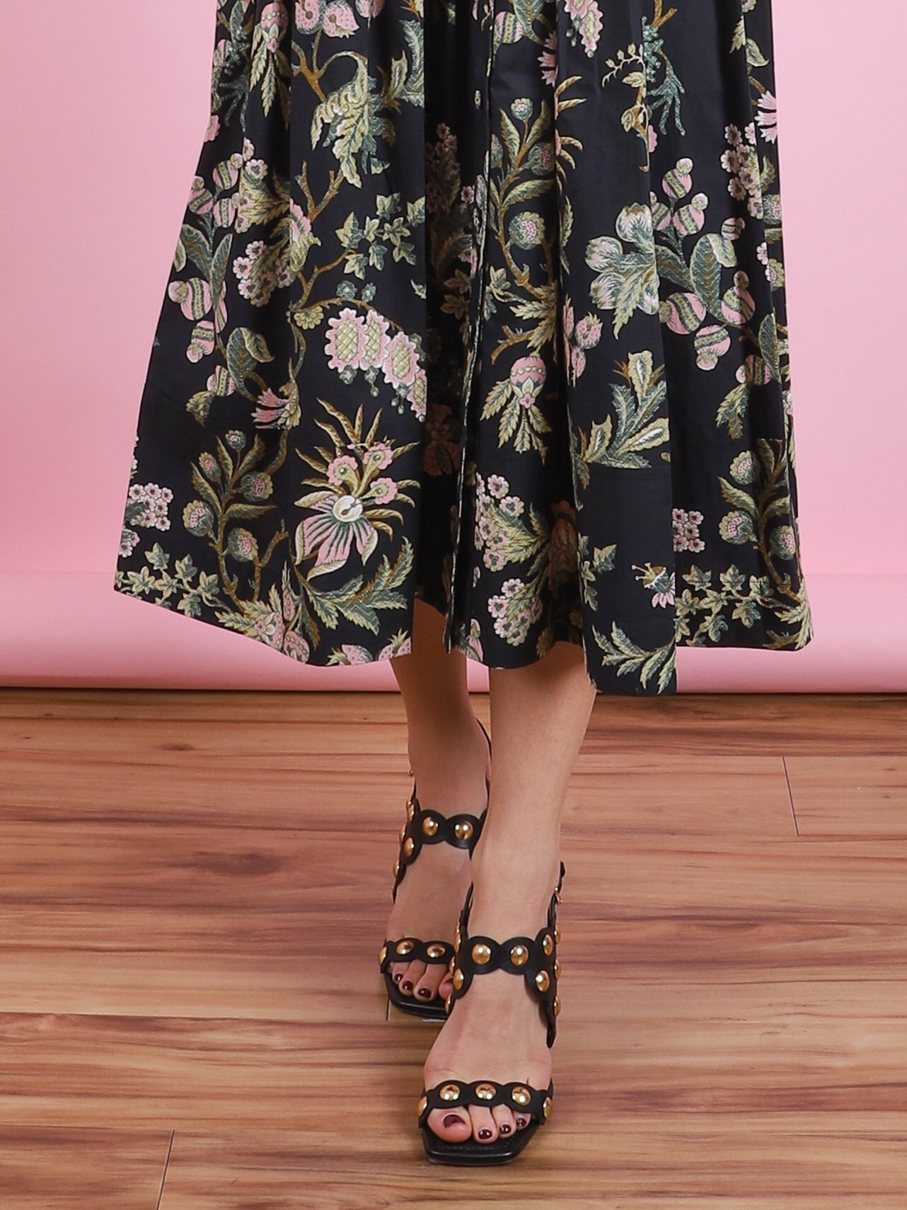 The Vendome Heel is crafted in Italy from black leather that’s boldly contrasted by dome-shaped golden studs. The block heel ensures elegant yet wearable elevation.