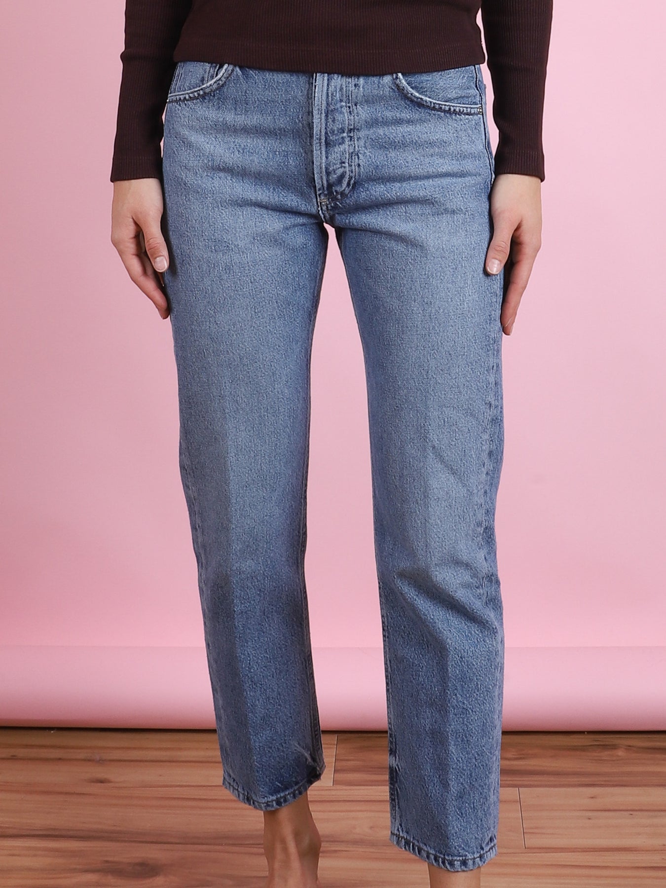 Model is 5'7," 25" waist, 34" hips - wearing a size 25. Fits True to size.
