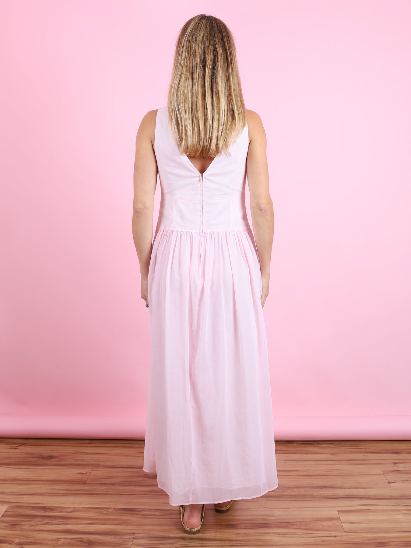 The Yoke Detail Sundress is crafted in lightweight cotton voile with soft cotton lining. A paneled yoke defines the waist, with fine gathers extending to a full hem. Detailed with topstitching, side seam pockets and an ankle-length silhouette, it offers effortless elegance for day-to-evening wear.