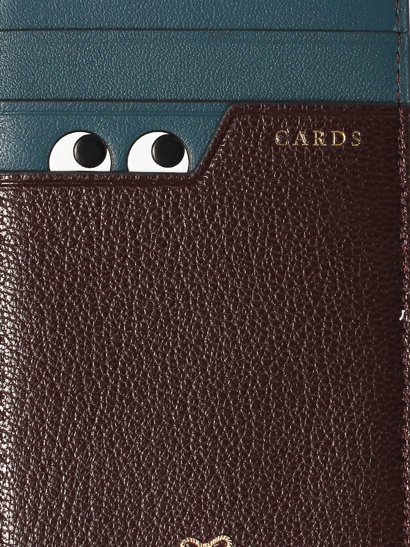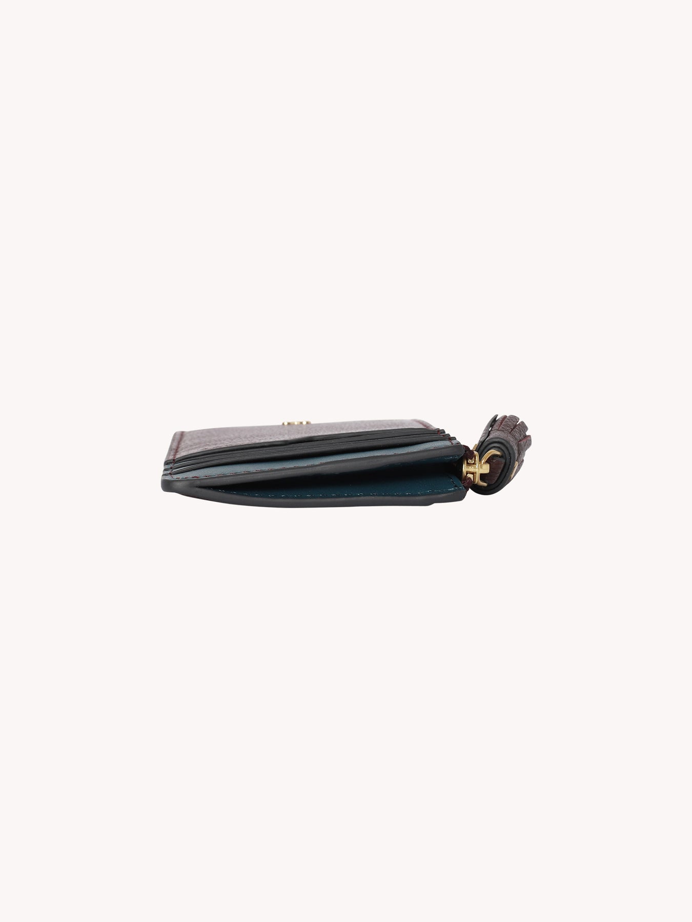 The Peeping Eyes Zip Card Case is practical and playful. It's crafted from contrasting claret and teal leather and fitted with a tassel-adorned zip. It has a slip pocket for receipts or a travel card, a compartment for loose change, and four card slots.